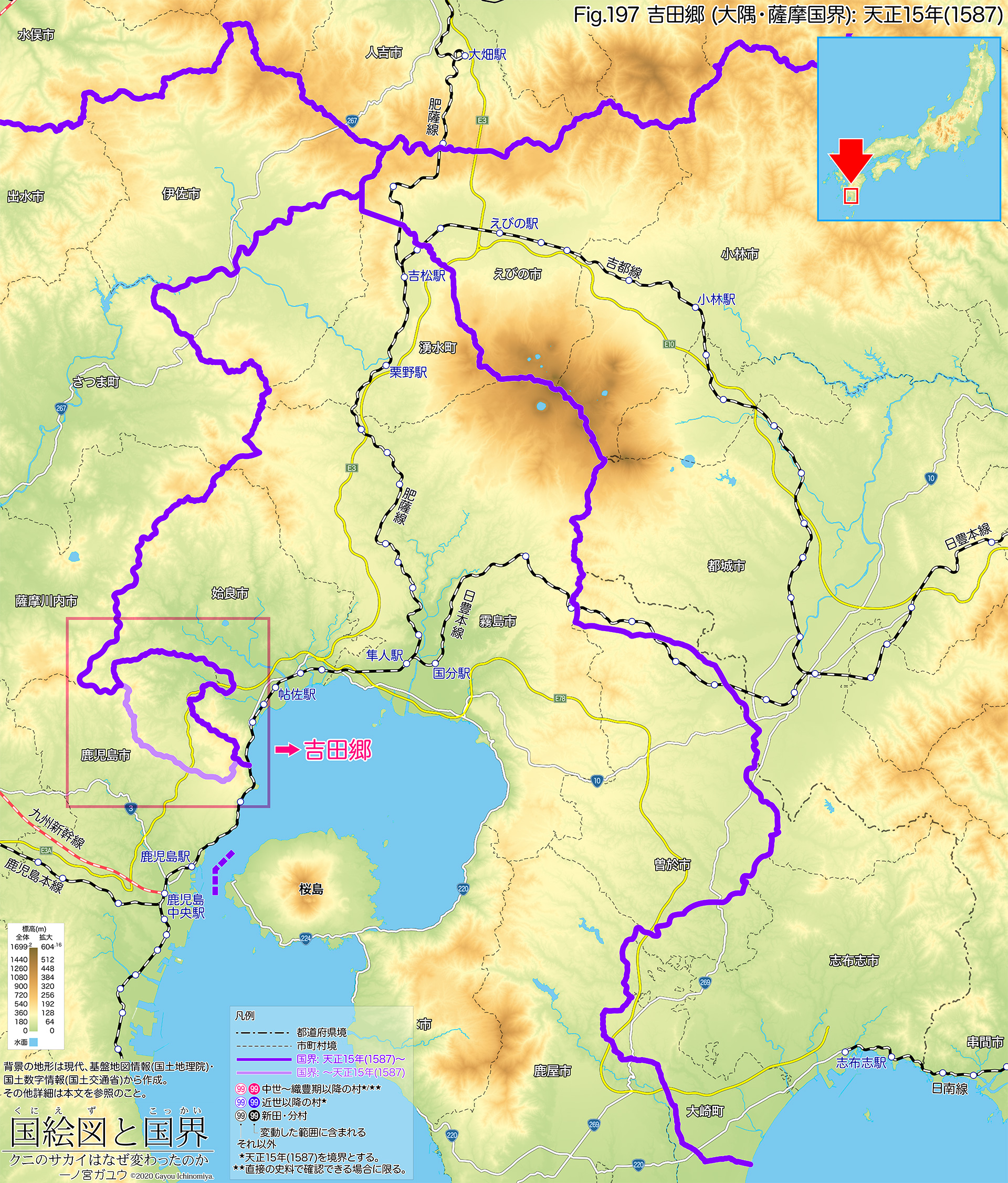 当地は戦国期から織豊期にかけて、当地は蒲生氏に対する島津氏の前線となって、大隅国でありながら薩摩国の延長のようにみなされつつあった。そこへ天正15年(1587) 3月、豊臣秀吉は大軍を率いて九州への侵攻を開始する。島津義久は抵抗を試みたものの、大軍を前に総崩れとなって撤退を余儀なくされ、同年 5月には降服した。秀吉はこれを受けて義久に薩摩国、義弘 (弟) に大隅国 (一部を除く) を安堵し、このとき大隅・薩摩国界は確定して、当地 (のち吉田郷) は薩摩国として把握されることになった。