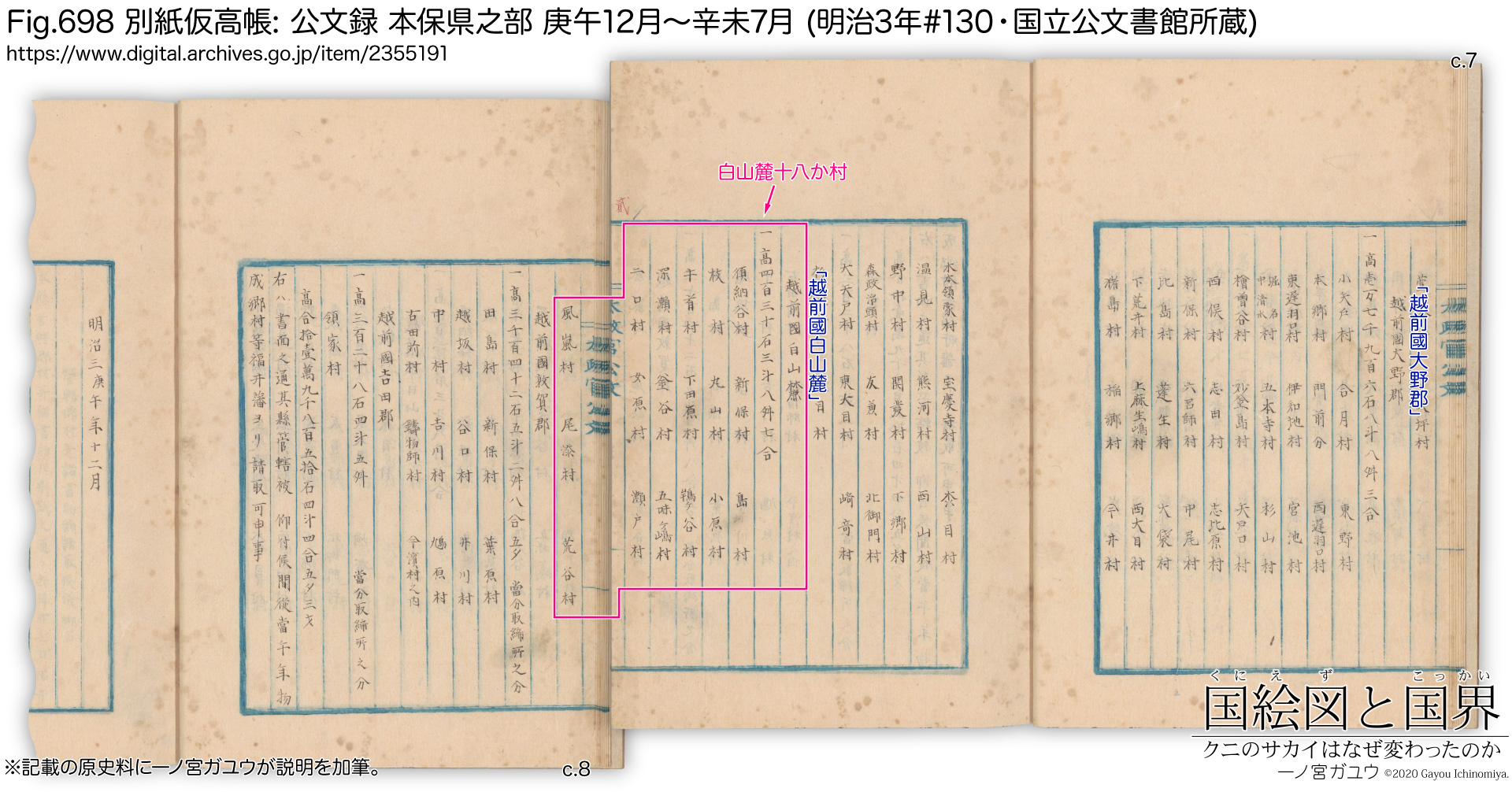 原文※1: 越前加賀白山麓十八ケ村ノ儀ハ、是迄国郡ノ称呼アルニアラス、又何レノ国郡ニ附属スルニモ無之 |