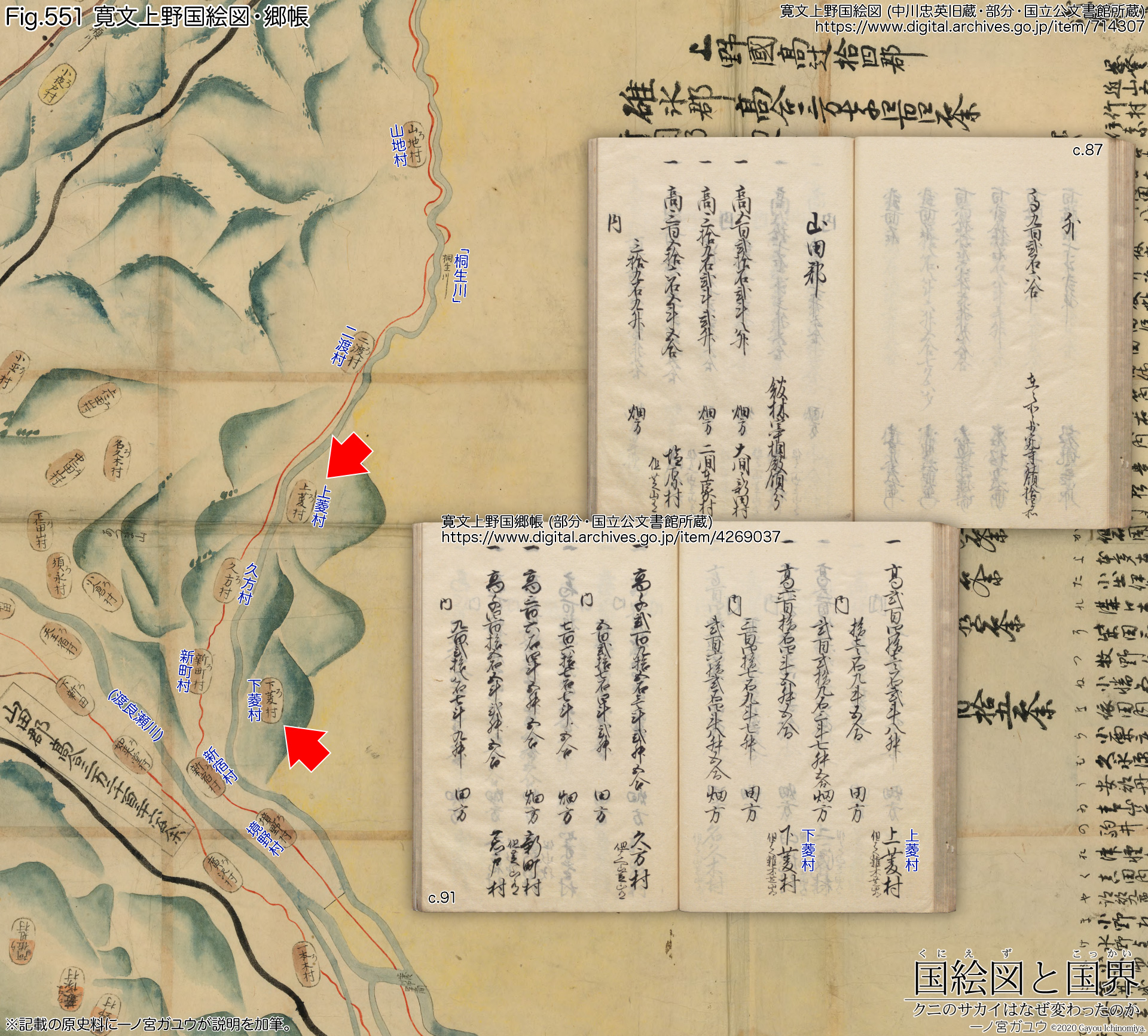 しかし『寛文上野国郷帳』・『寛文上野国絵図』に、上菱村・下菱村は山田郡として含まれ、寛文8年(1668) 前後に変動があったことがわかる。