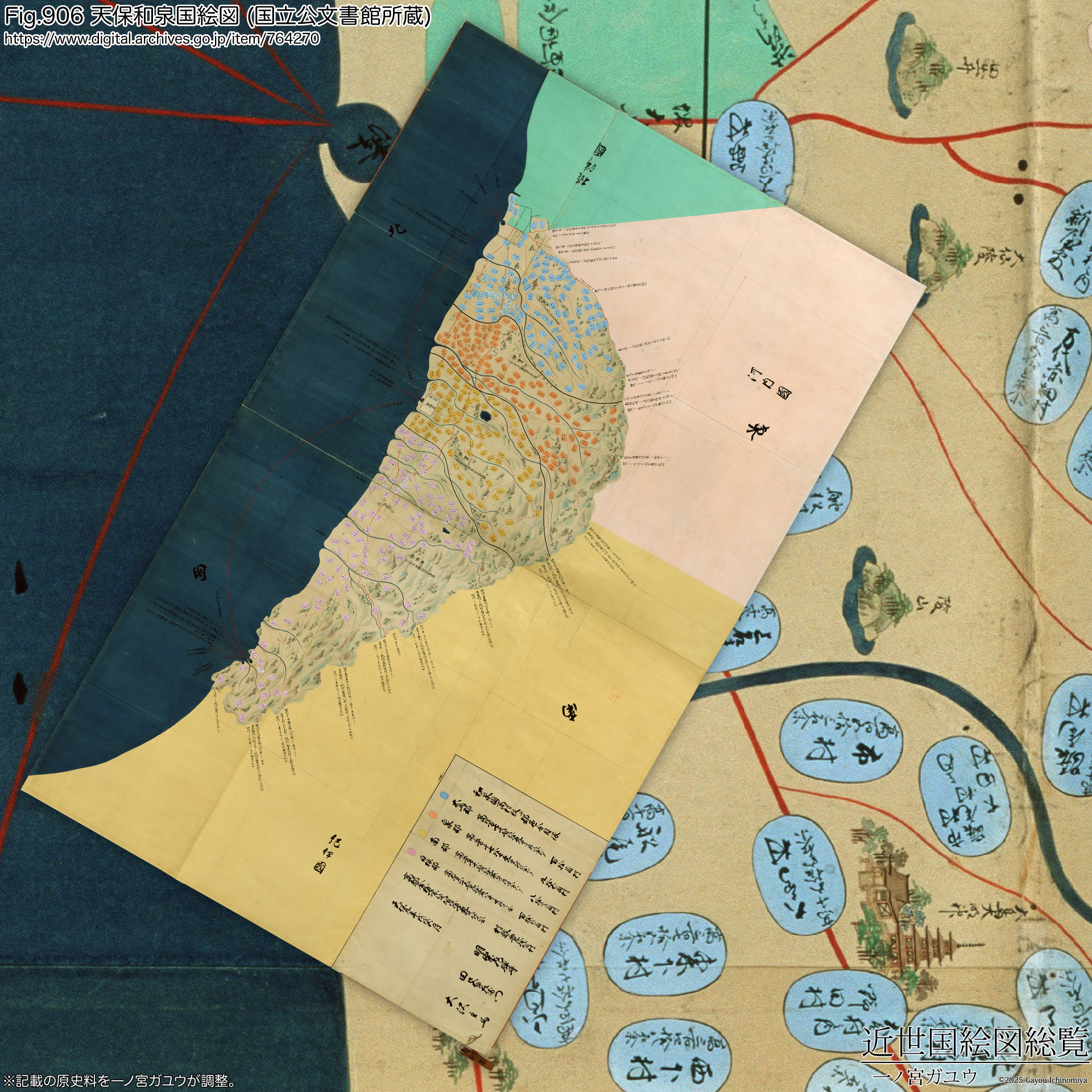 冒頭で言及のとおり、『天保和泉国絵図』は国立公文書館に紅葉山文庫旧蔵 (#764270) が現存・オンライン公開されている。
