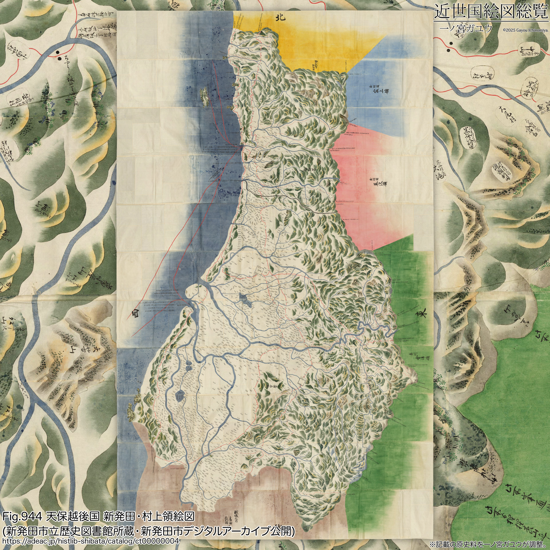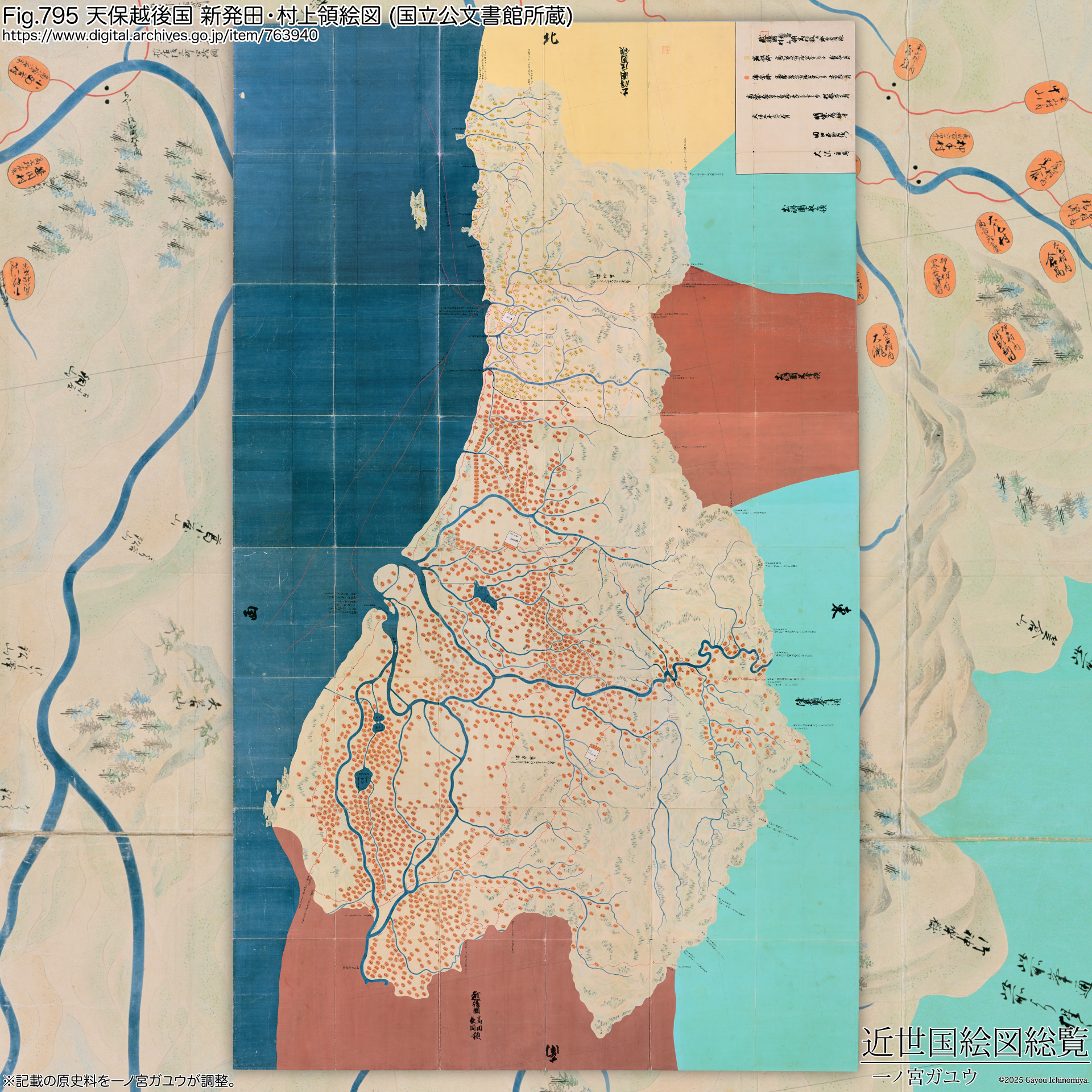 これらは『天保越後国絵図』と同じように 2分割されたうちの北部 (新発田・村上) で、南部 (高田・長岡) は現存を確認できない。