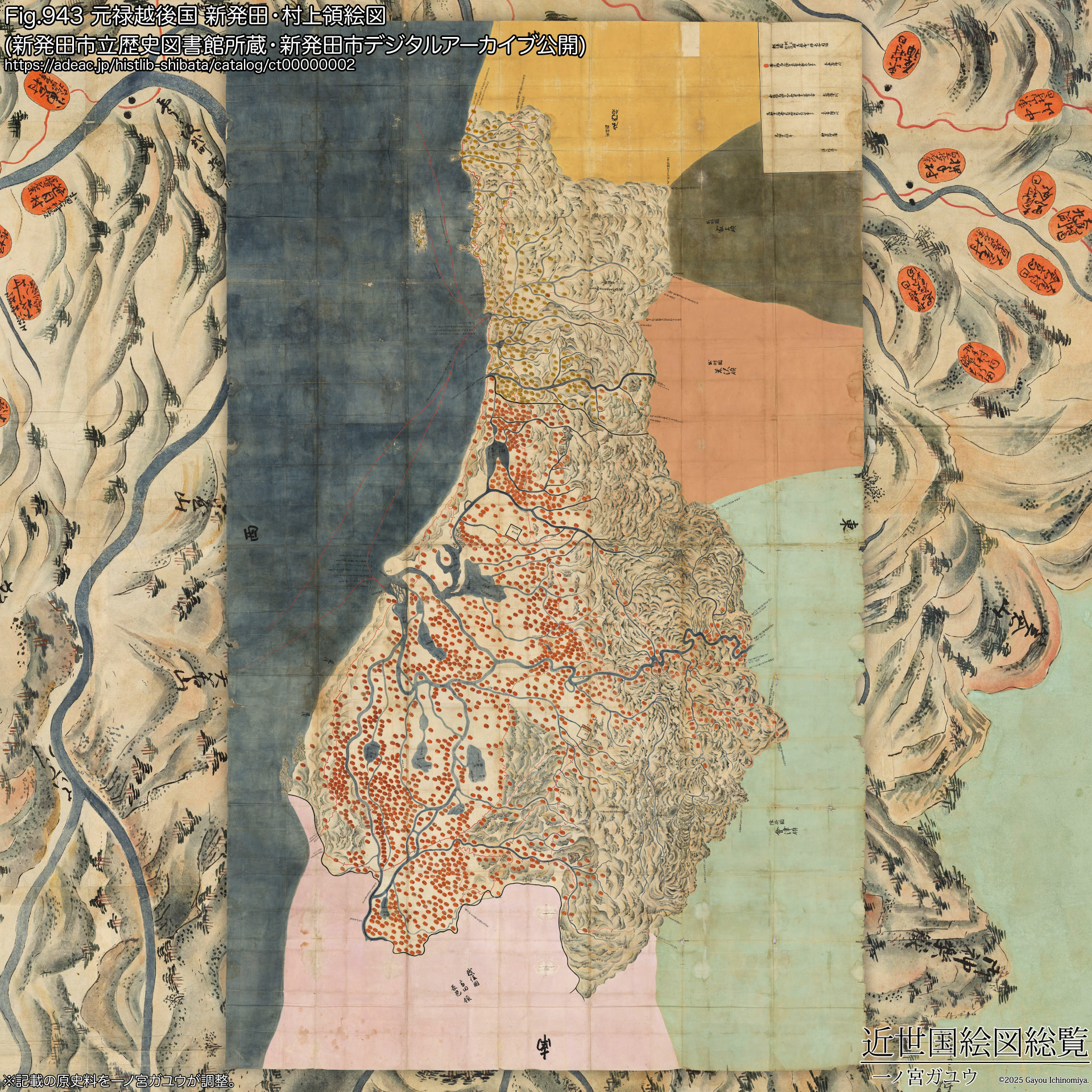 | 元禄 | 所蔵 | 元禄十三年 越後国岩船蒲原郡絵図 (#ct00000002) | 新発田市 デジタルアーカイブ | 控 北部 (新発田・村上) → 参照 | ||