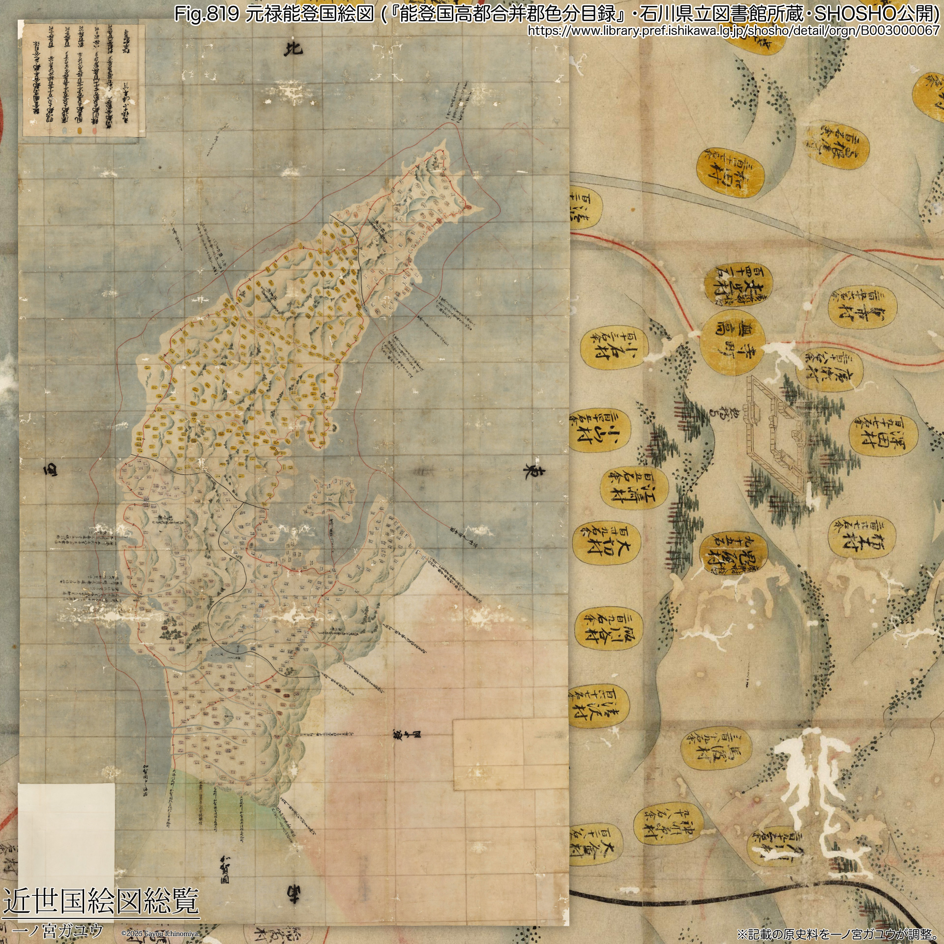 | 正保 | 所蔵 | 能登国四郡絵図 | SHOSHO (石川県立図書館所蔵) | 下 → 参照 | ||