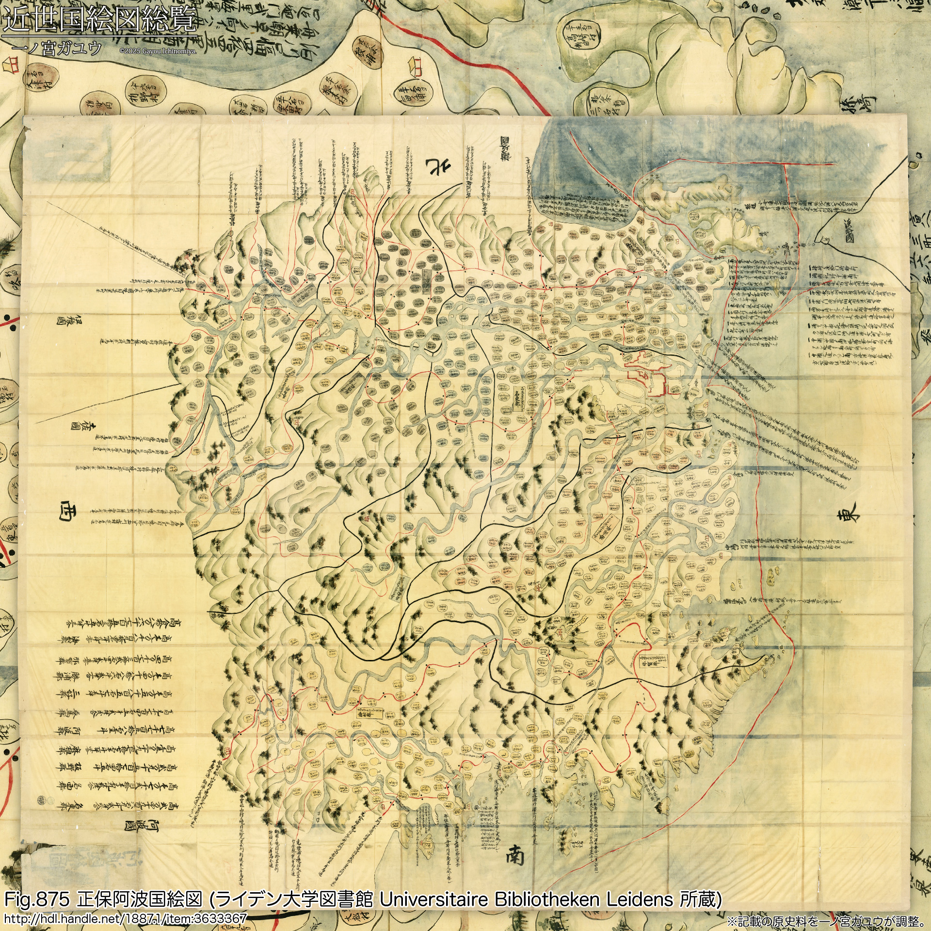 | 正保 | 筆者 | Awa no kuni ezu (阿波国絵図) (Ser. 270) | Universitaire Bibliotheken Leidens (ライデン大学図書館) | 写 → 参照 | ||