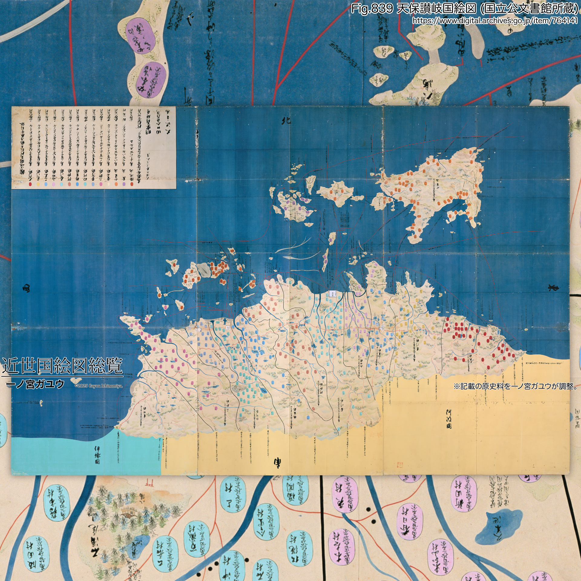 小豆島は本来備前国の一部だが、ここでは近世国絵図の分類であるため讃岐国に含めた (小豆島については『26. 小豆島』を参照)。