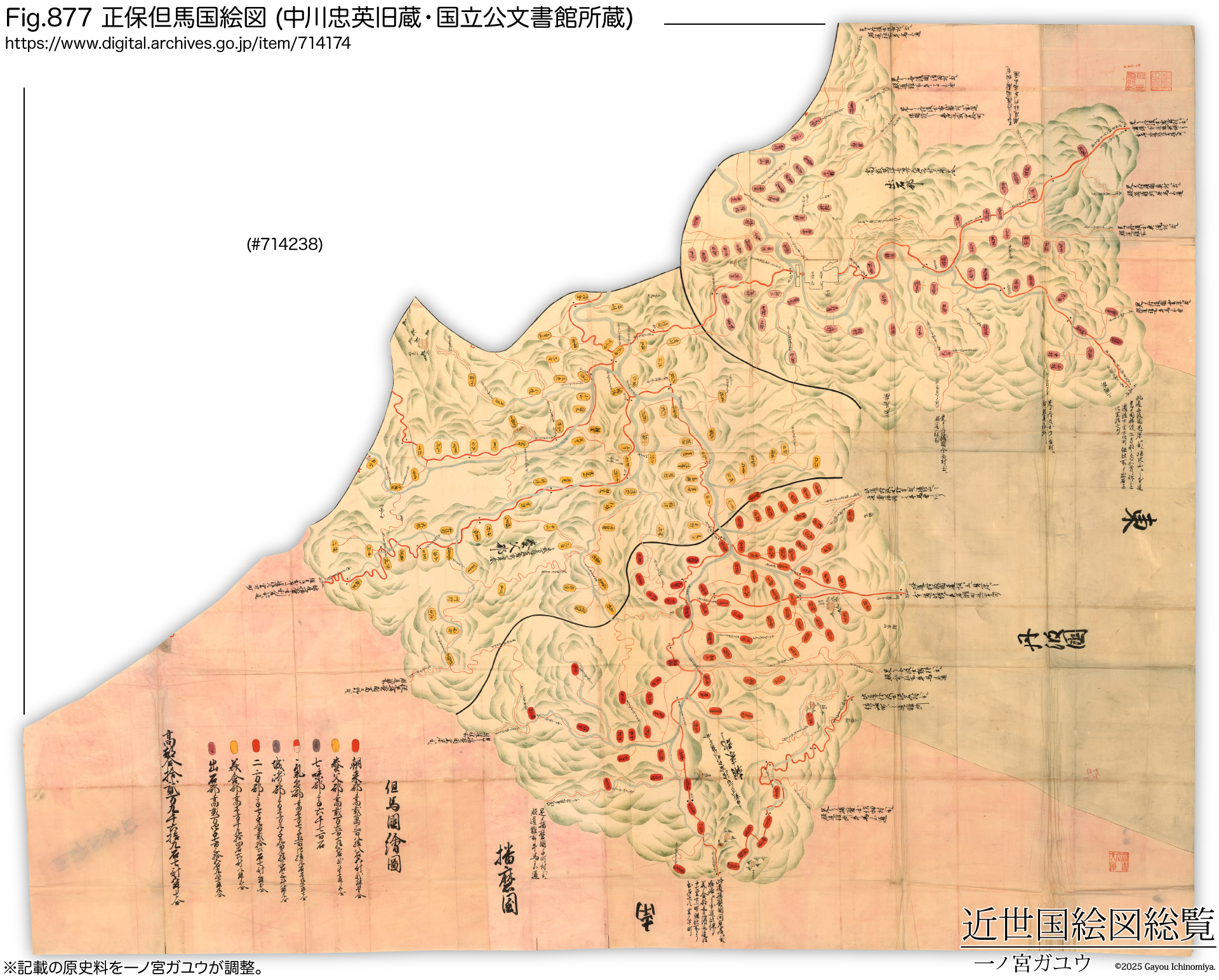 前述のとおり様式と内容から本図は『正保但馬国絵図』だが、これ以上は前項の、『兵庫県史 第4巻 近世編2』(1979)で言及される『寛永但馬国絵図』『正保但馬国絵図』『元禄但馬国絵図』との比較検討しなければならない。注釈