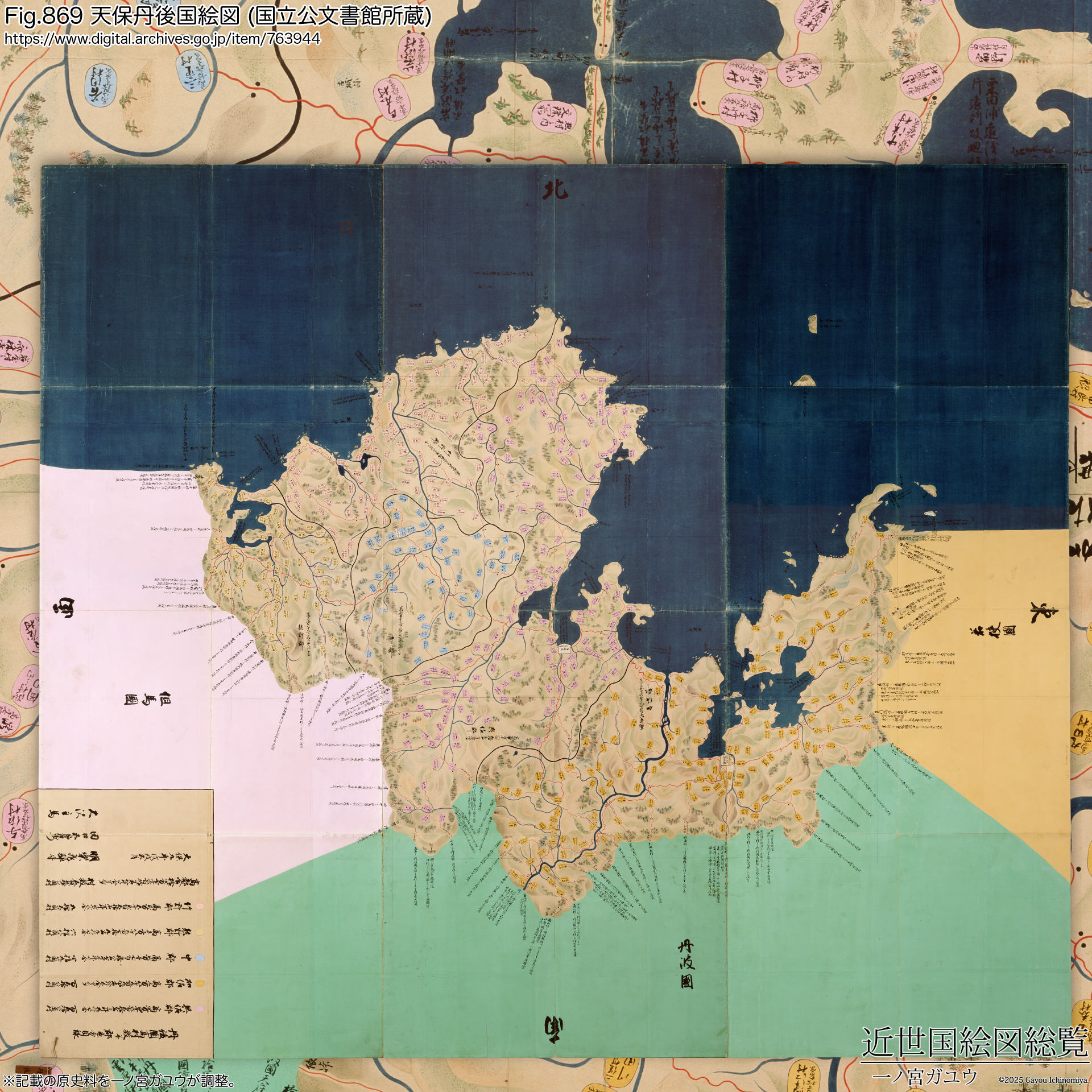 ↓一覧へ移動丹後国は山陰道に属する国である。国立公文書館所蔵の『天保丹後国絵図』は紅葉山文庫旧蔵・勘定所旧蔵が現存し、紅葉山文庫旧蔵 (#763944) がオンライン公開されている。