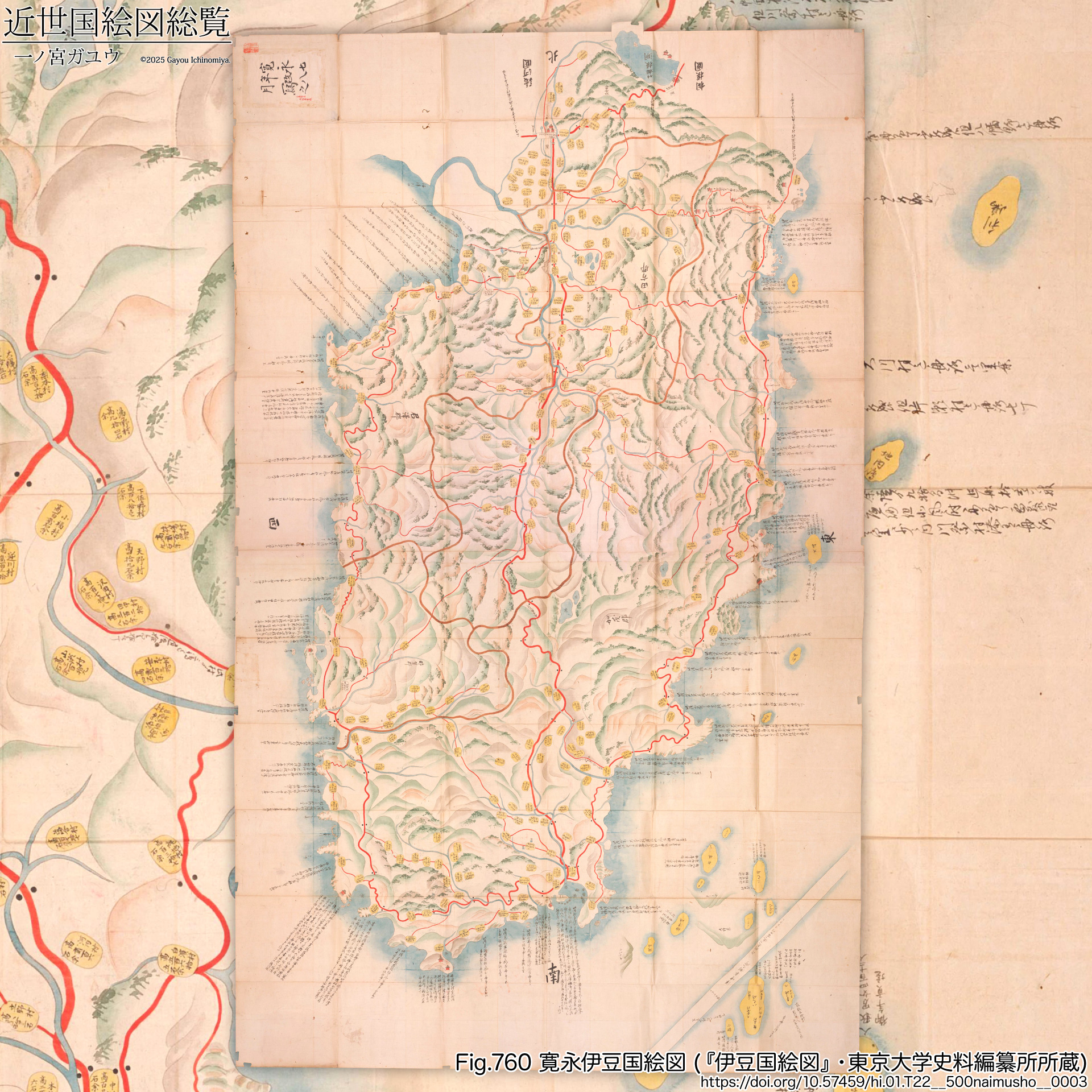 オンラインで参照できる伊豆国絵図 (伊豆国の国絵図) のリストと詳細情報を提供しているページです。