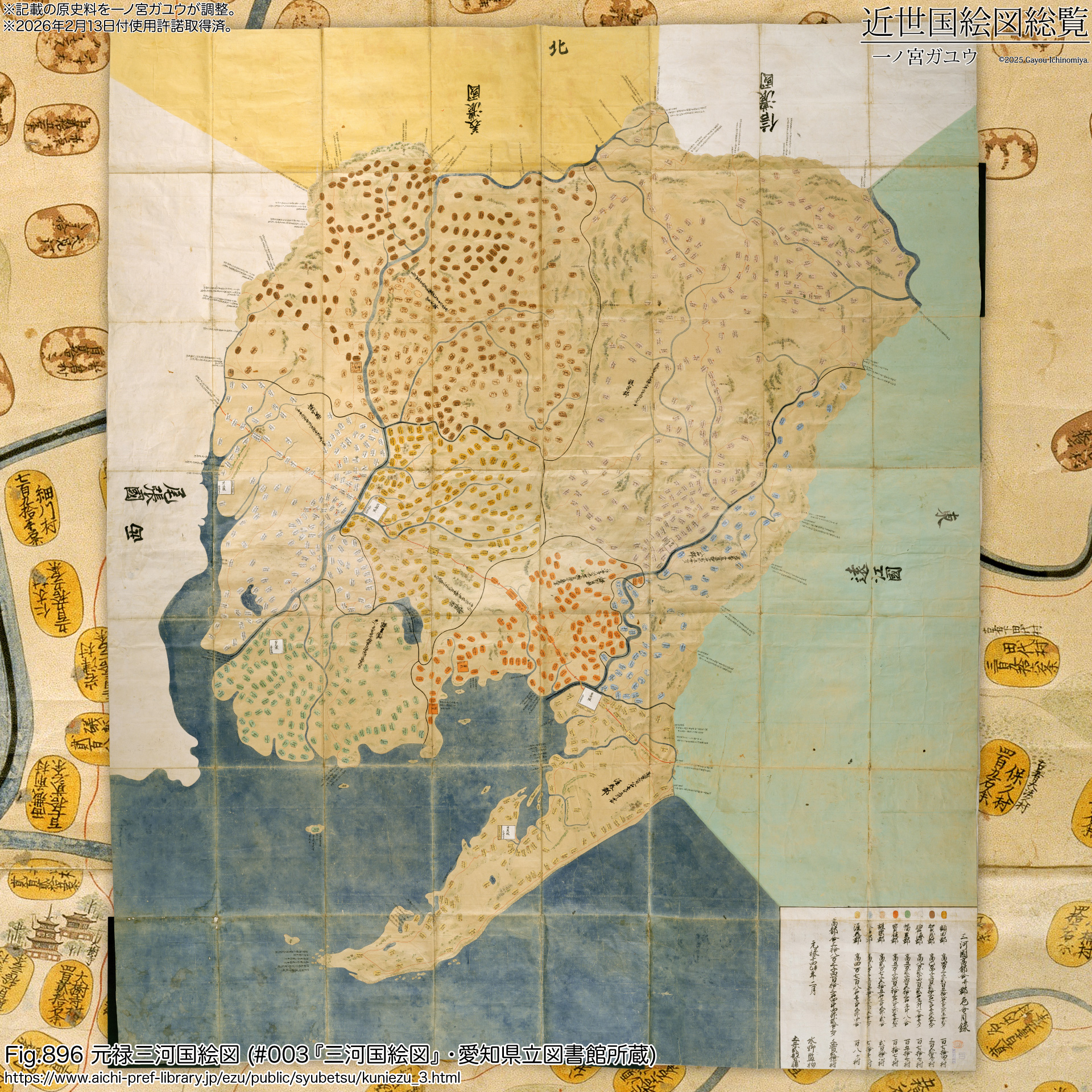 一方、愛知県図書館には控図が現存し、『絵図の世界』で『三河国絵図』(#003)としてオンライン公開されている。