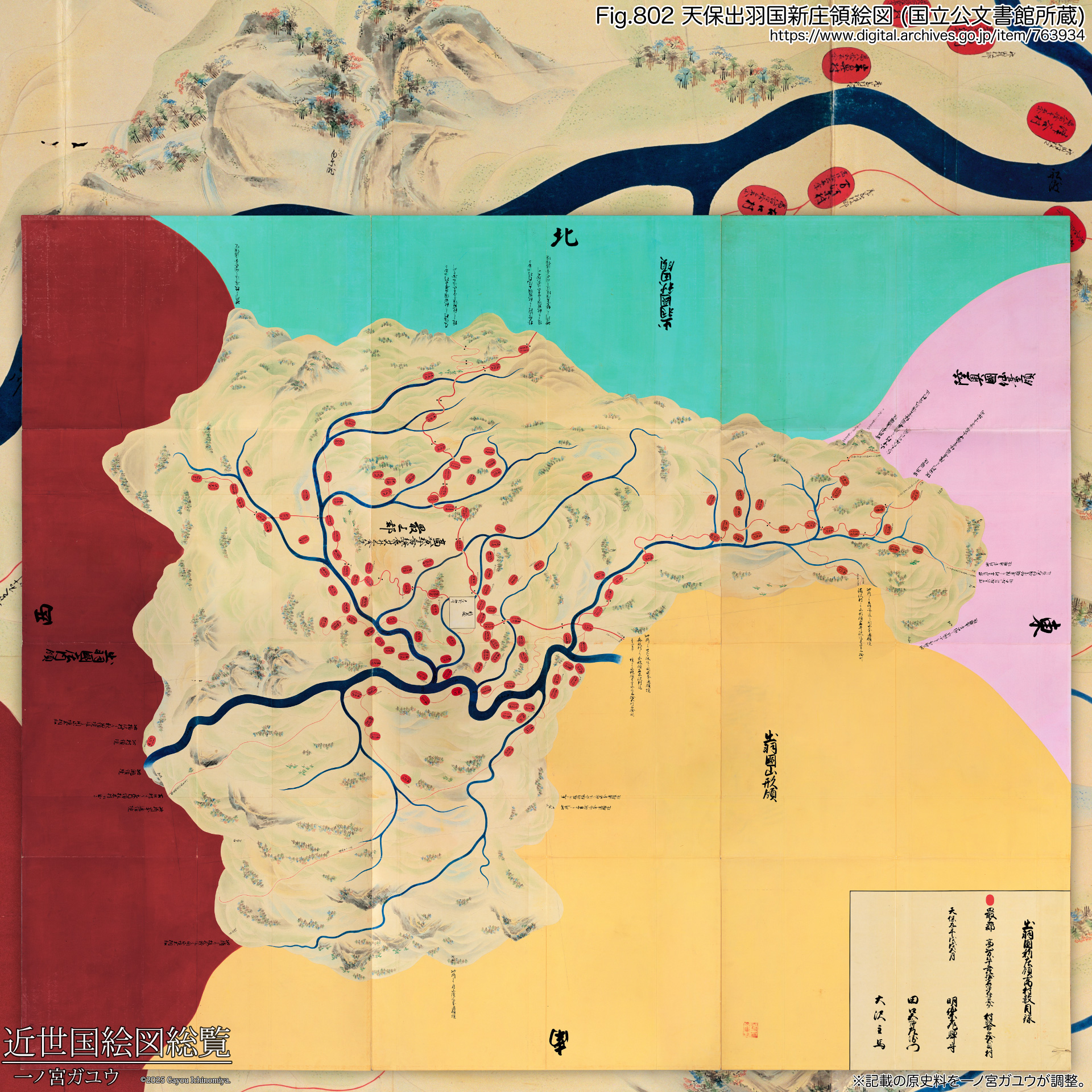 国立公文書館所蔵の『天保出羽国 新庄領絵図』は勘定所旧蔵 (#763934) が現存・オンライン公開されている。