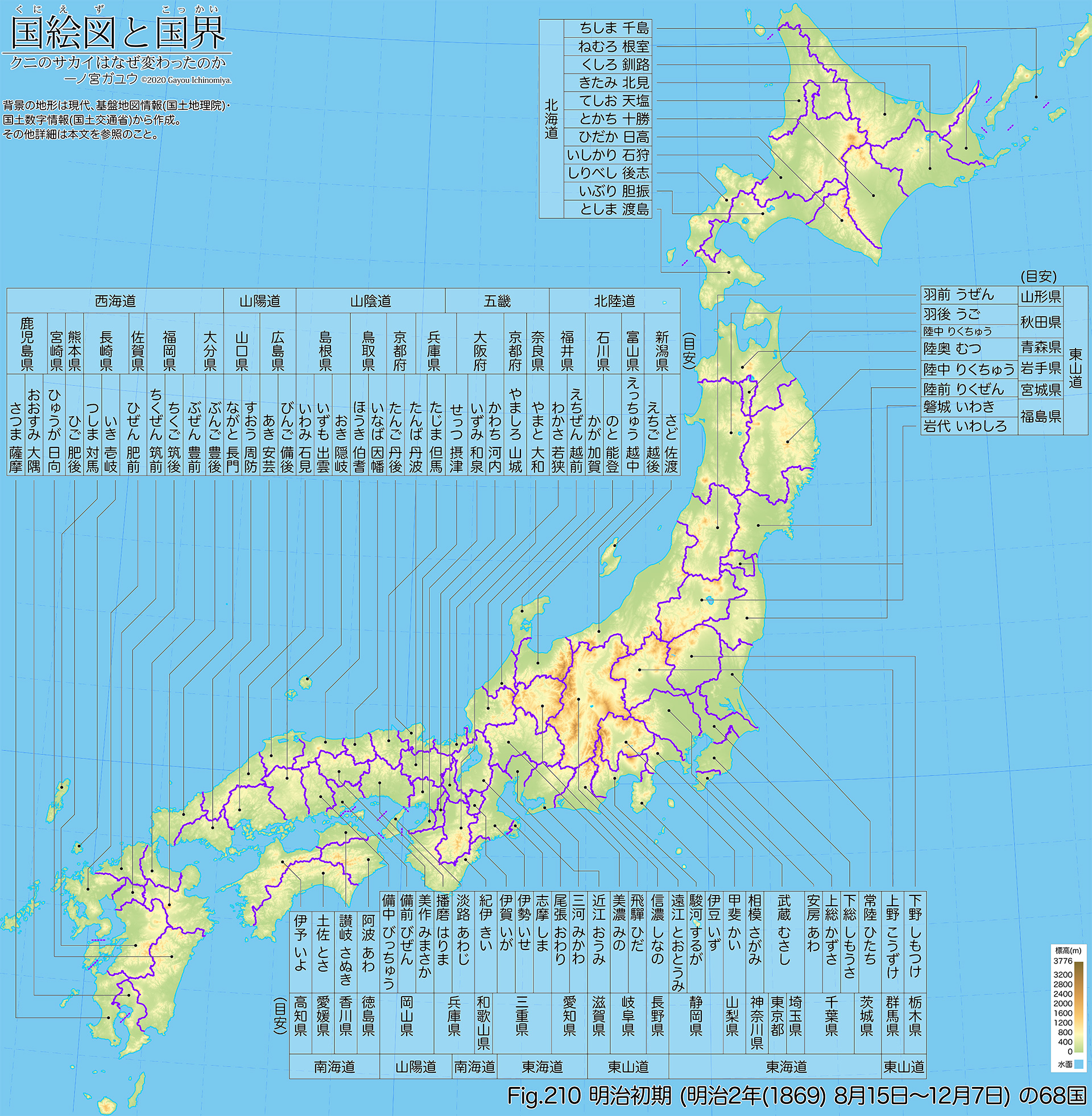 また明治2年(1869) 8月15日付で、いわゆる「蝦夷地」が北海道と改められ、あわせて石狩・胆振・渡島・北見・釧路・後志・千島・天塩・十勝・日高・根室の 11国が置かれた。