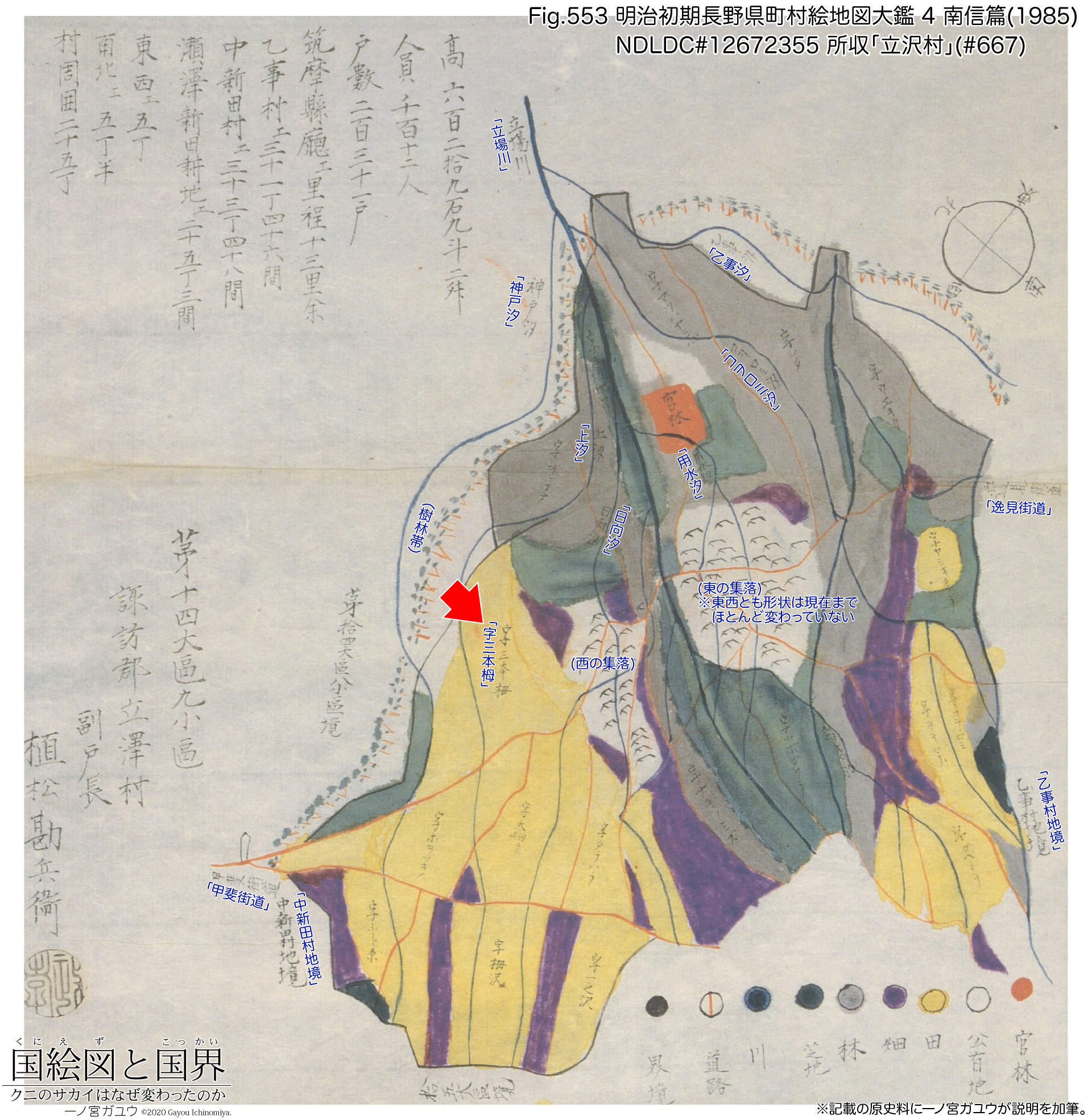 | 『諏訪史蹟要項 8 富士見村篇』(1955/1996) | 天文九年堺十八ケ村が諏訪領とならざる以前の甲信の境界 a、立場肘曲り―糠塚―神戸あらい坂―麦日向見通シ b、立場肘典り―栗生の細尾迄 |