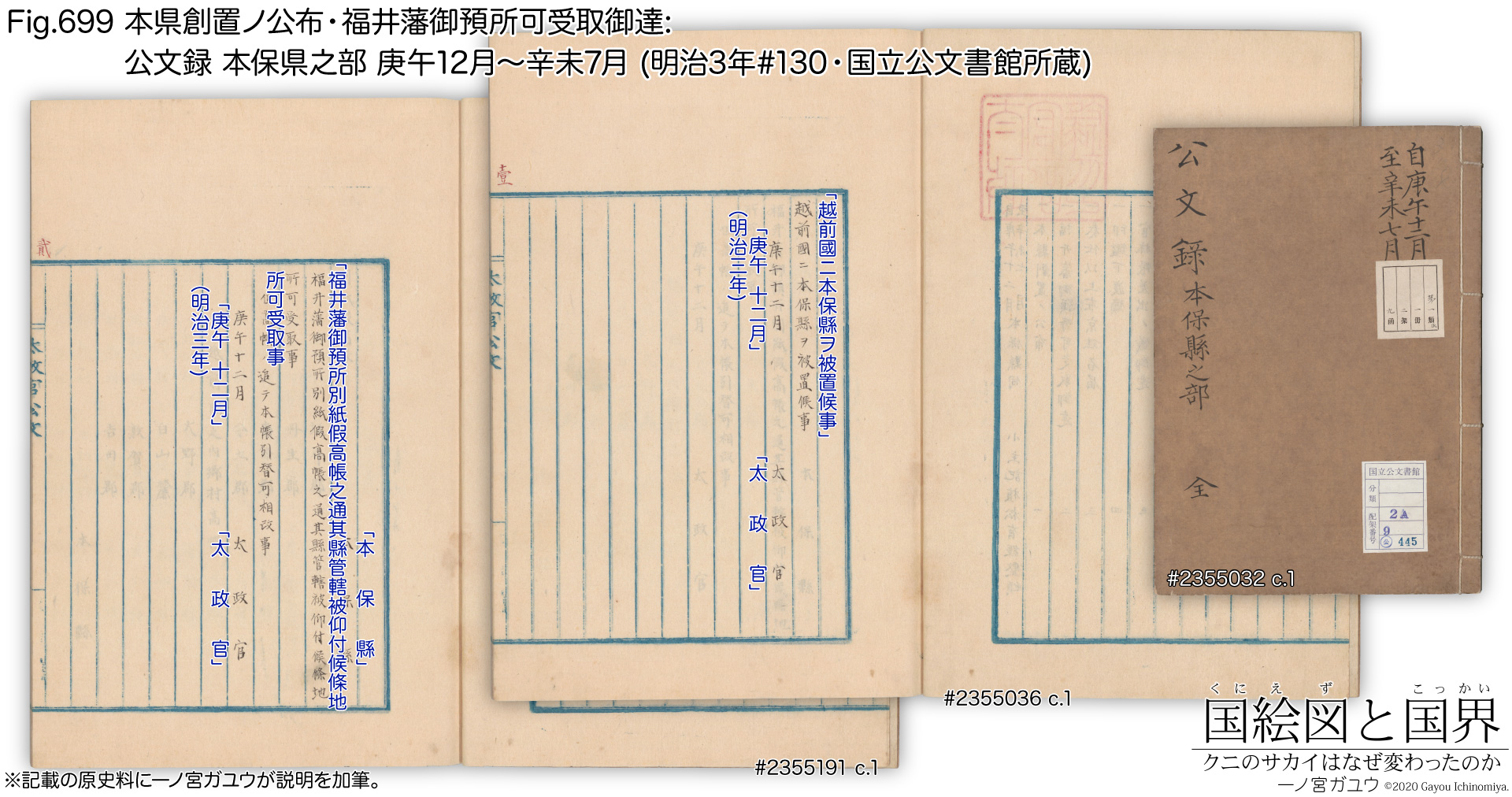 一方で、明治4年(1871) 12月3日付『本保県白山麓地所引渡ノ儀ニ付伺』 (公文録 諸県之部 辛未12月, 明治4年#169; #2350874 (cc.1-2)で旧・本保県は金沢県 (現・石川県の前身のひとつ) と話し合い、白山麓十八か村を両県で分割することですでに合意していることを説明している。