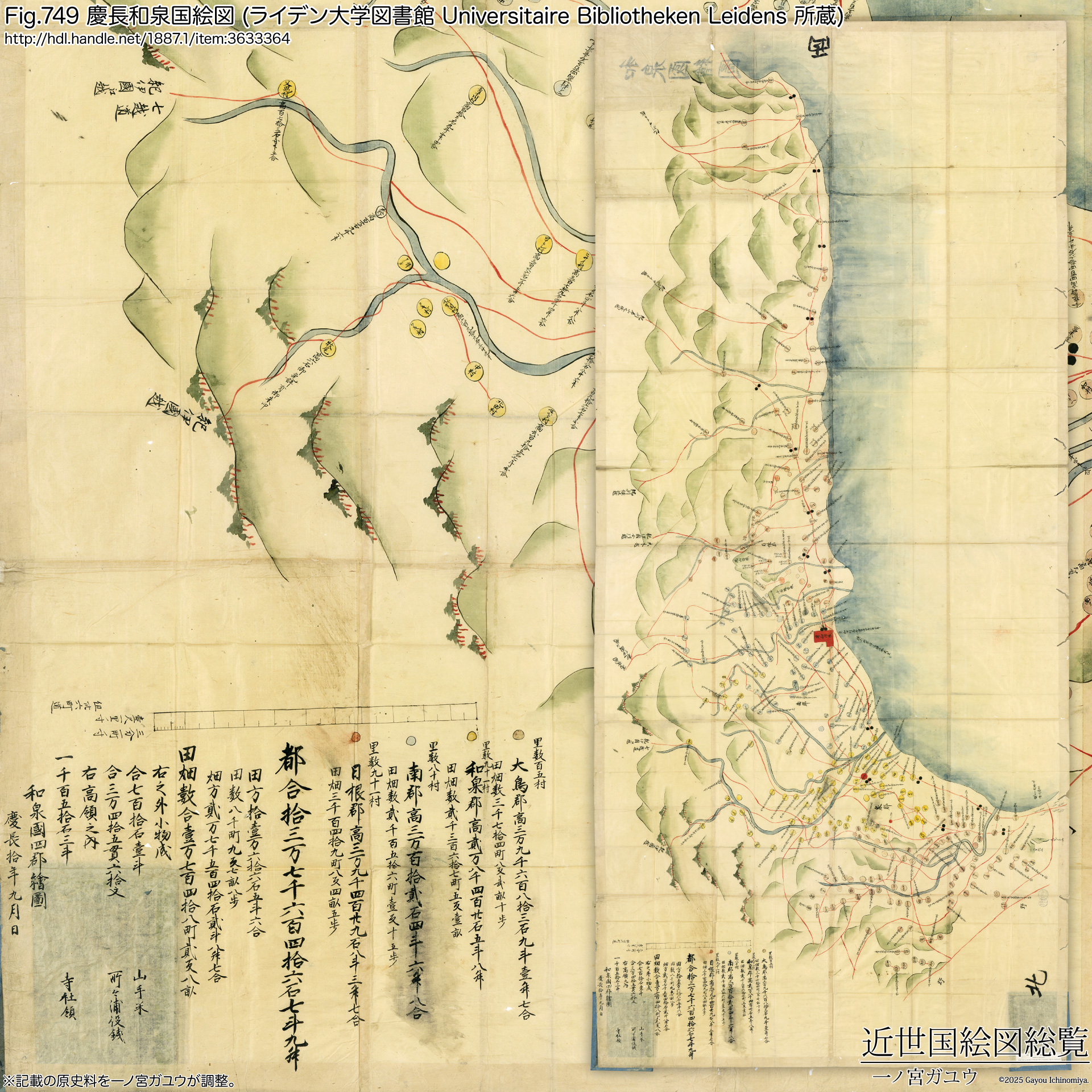 | 慶長 | 筆者 | Izumi no kuni ezu (和泉国絵図) (Ser. 262) | Universitaire Bibliotheken Leidens (ライデン大学図書館) | 写 → 参照 | ||