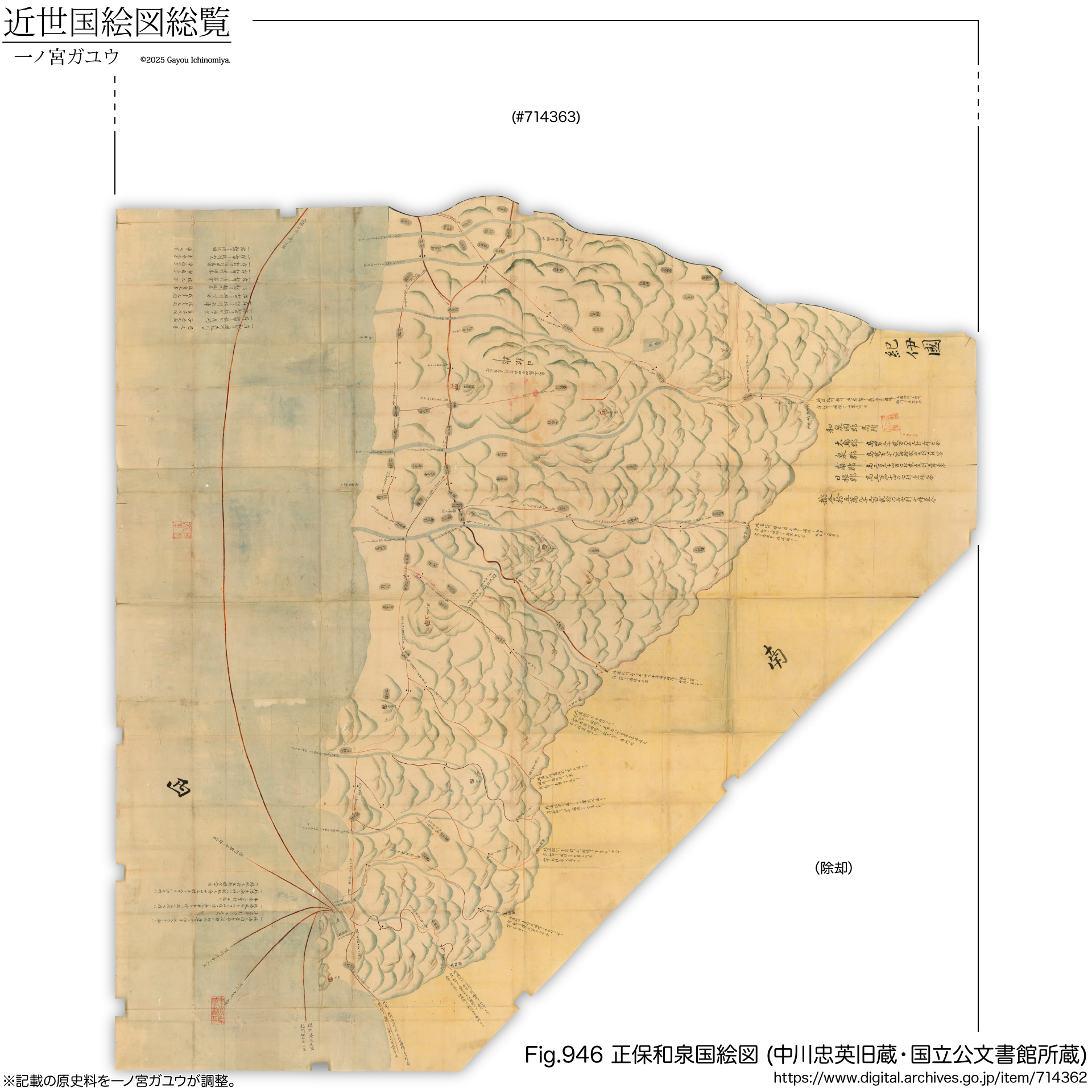 冒頭で言及のとおり、『天保和泉国絵図』は国立公文書館に紅葉山文庫旧蔵 (#764270) が現存・オンライン公開されている。
