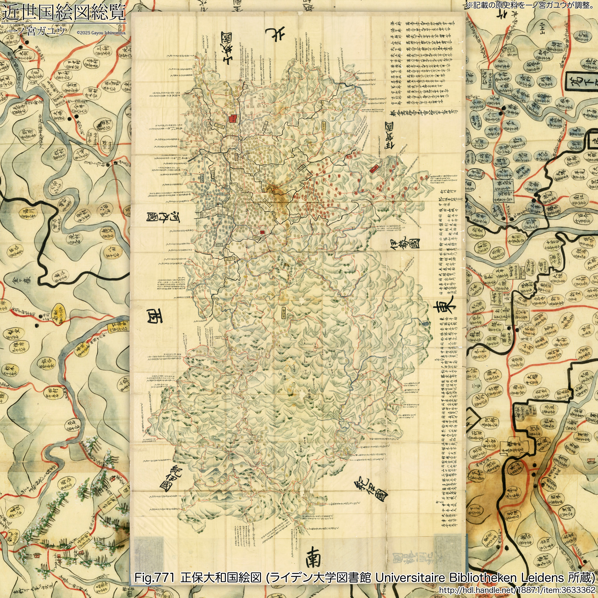 | 正保 | 筆者 | Yamato no kuni ezu 大和国絵図 (Ser. 258) | Universitaire Bibliotheken Leidens (ライデン大学図書館) | 写 → 参照 | ||