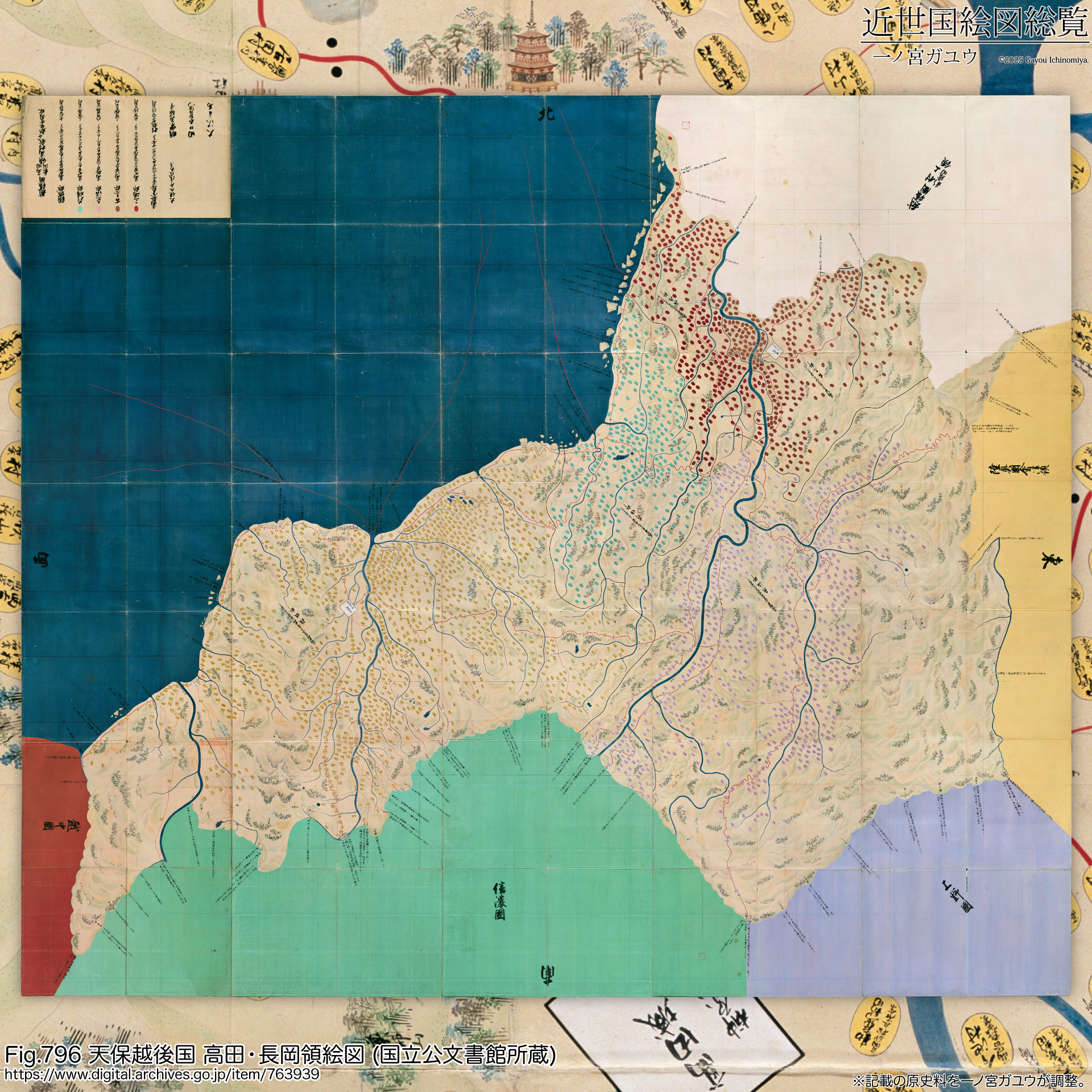 | 天保 | 筆者 | 越後国頸城苅羽魚沼古志三嶋郡絵図 (1/8 2/8 3/8 4/8 5/8 6/8 7/8 8/8) | 越後佐渡 デジタルライブラリー | 下 南部 (高田・長岡) → 参照 | ||