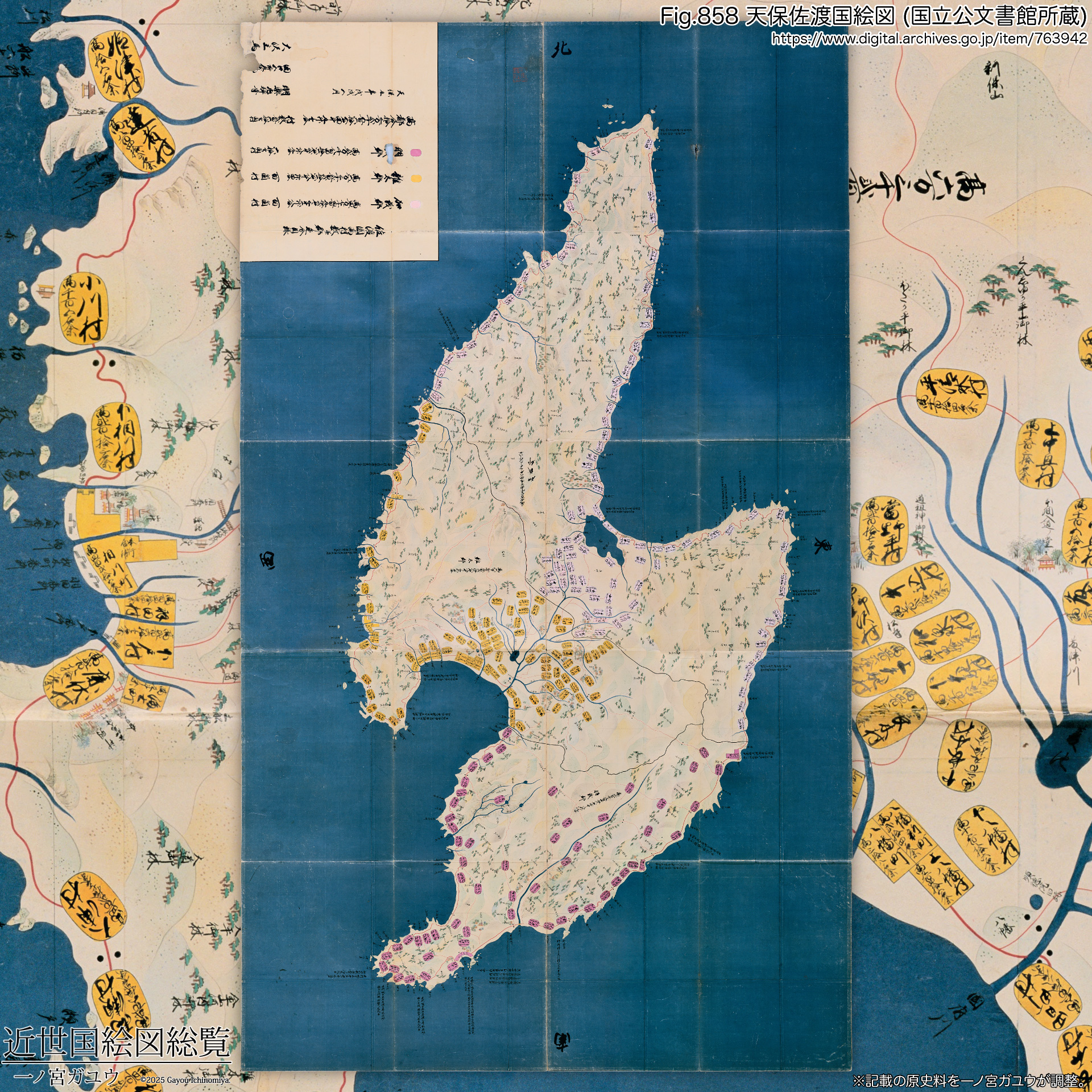 冒頭で言及のとおり、『天保佐渡国絵図』は国立公文書館に勘定所旧蔵 (#763942) が現存・オンライン公開されている。
