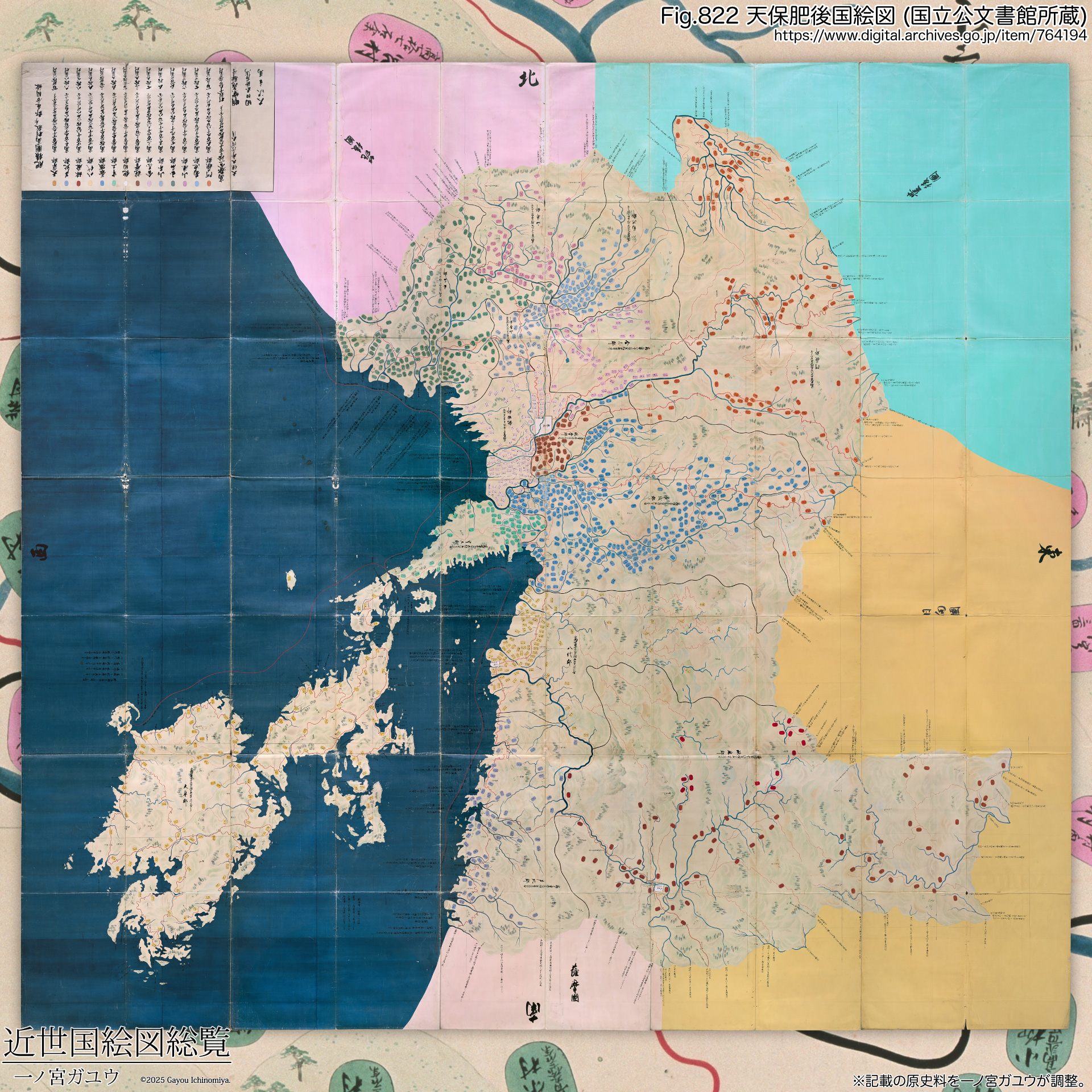 ↓一覧へ移動肥後国は西海道に属する国である。国立公文書館所蔵の『天保肥後国絵図』は紅葉山文庫旧蔵 (#764194) が現存・オンライン公開されている。