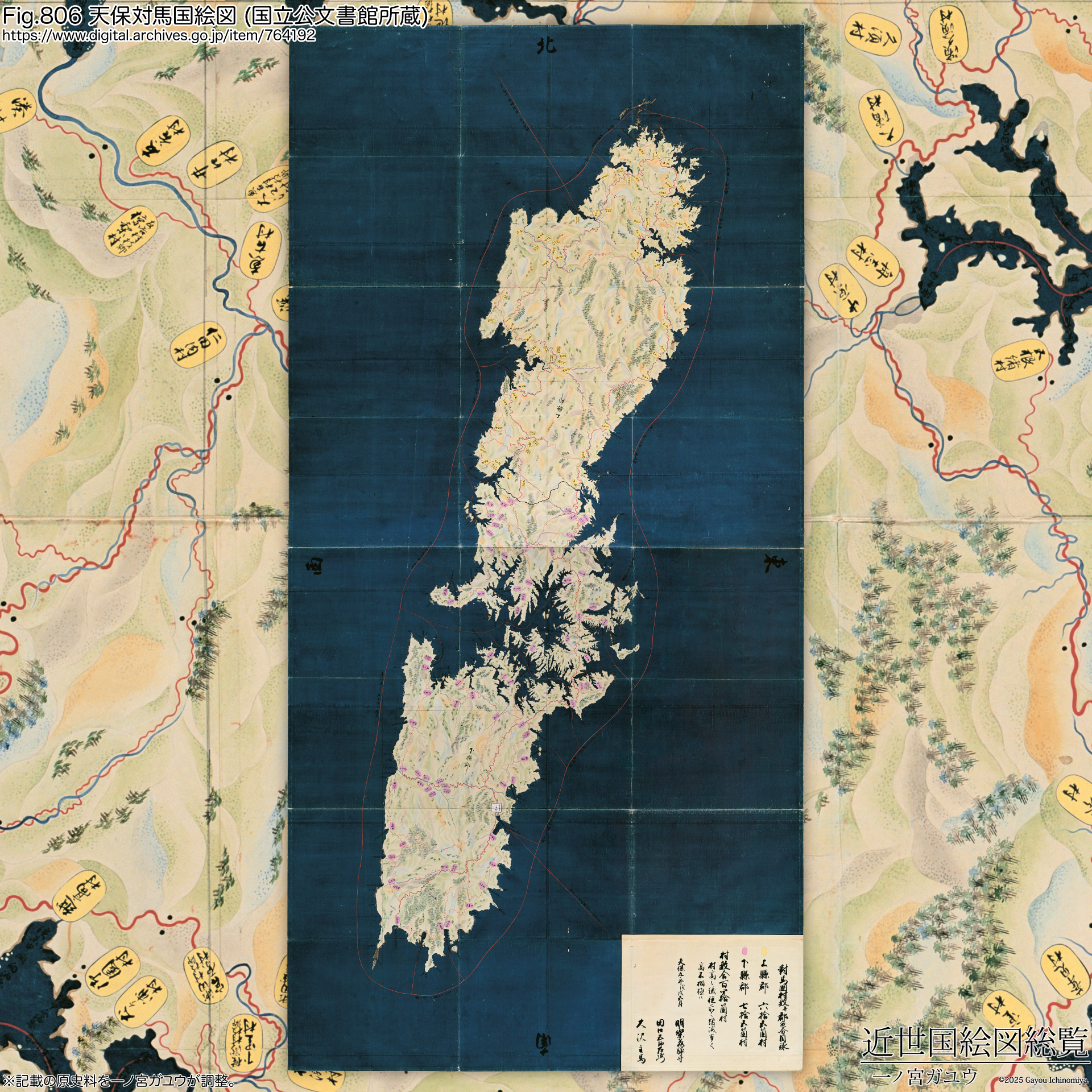 冒頭で言及のとおり、『天保対馬国絵図』は国立公文書館に紅葉山文庫旧蔵 (#764192) が現存・オンライン公開されている。