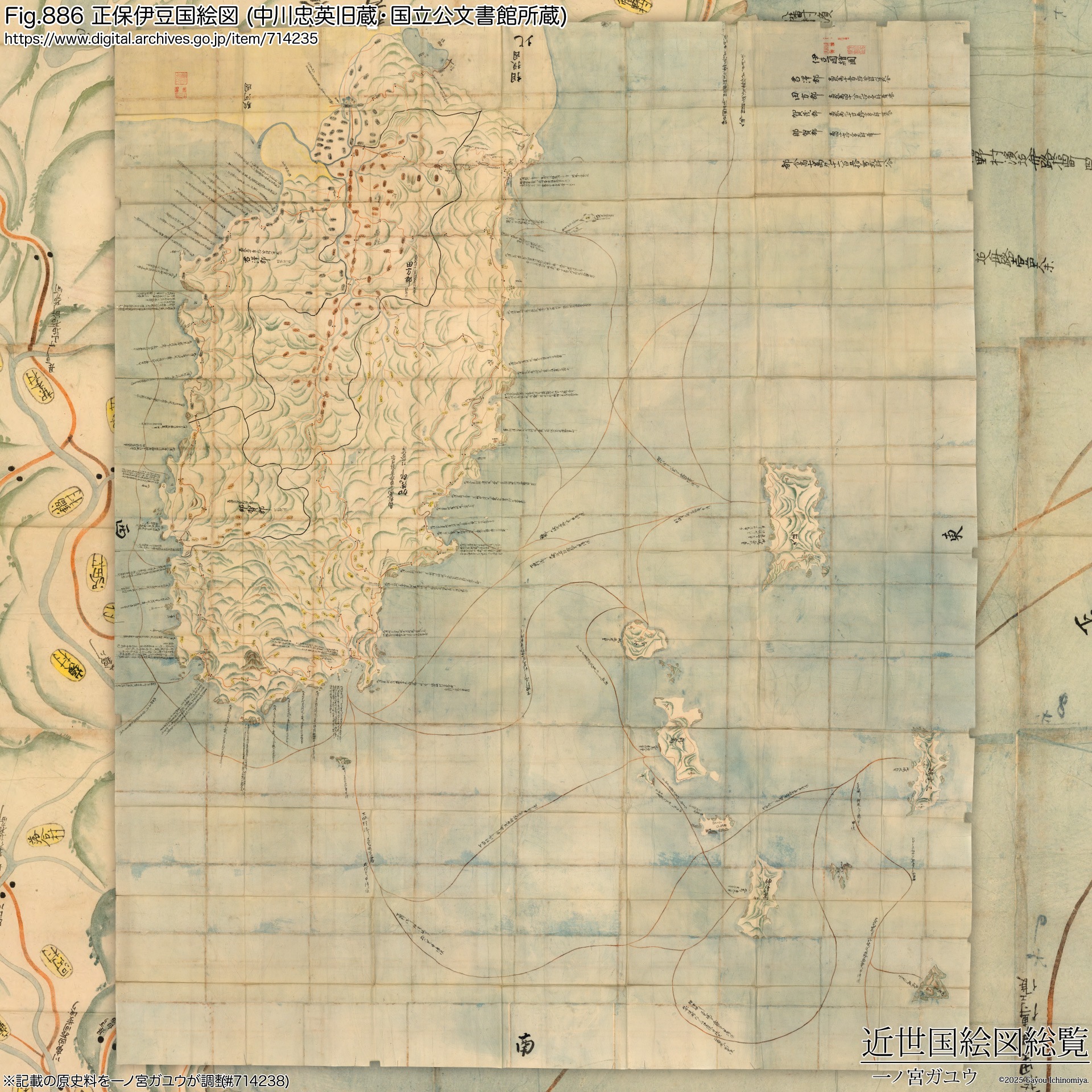 国立公文書館所蔵、中川忠英旧蔵の国絵図群 (通称『日本分国図』) には伊豆国のものが現存・オンライン公開されている (#714235)。