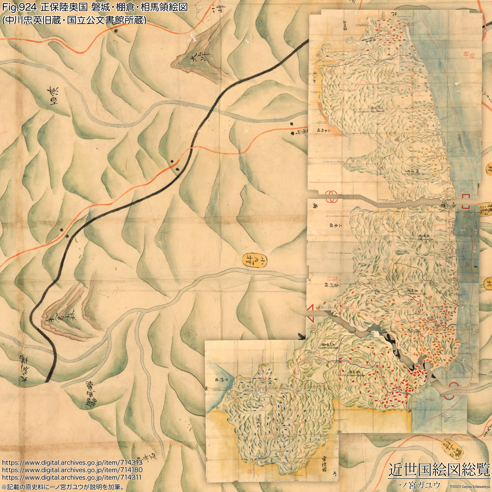 国立公文書館所蔵、中川忠英旧蔵の国絵図群 (通称『日本分国図』) には陸奥国 磐城・棚倉・相馬領のものが 3分割された形式で含まれ、すべて現存・オンライン公開されている (#714313 #714180