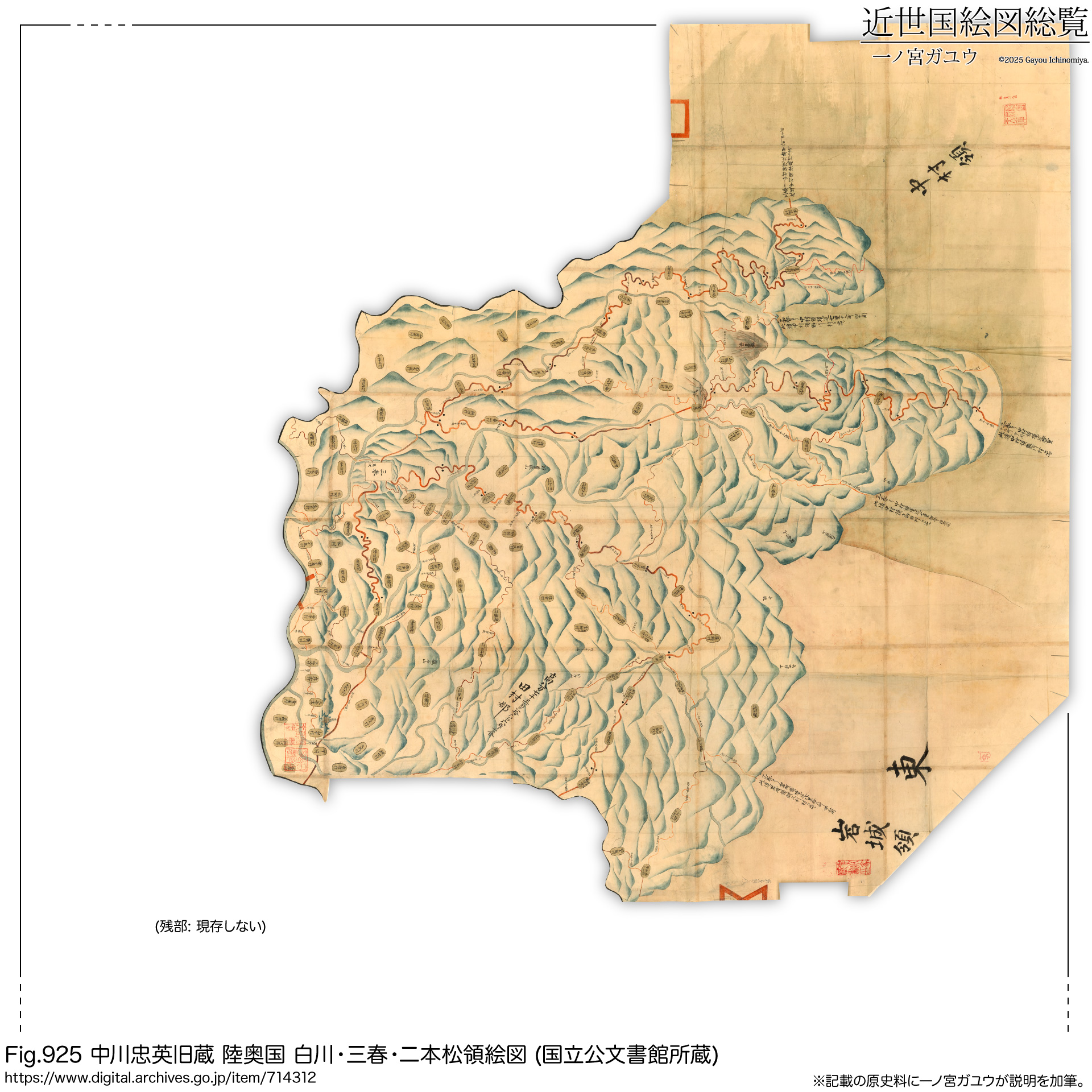 国立公文書館所蔵の『天保陸奥国 白河・三春・二本松領絵図』は勘定所旧蔵 (#764240) が現存・オンライン公開されている。
