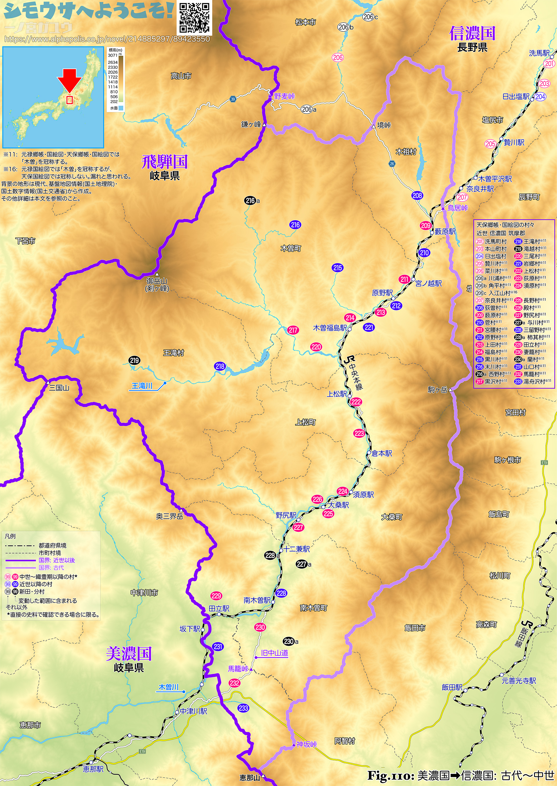 | ❉11: | 元禄郷帳・国絵図・天保郷帳・国絵図では「木曽」を冠称する。 |