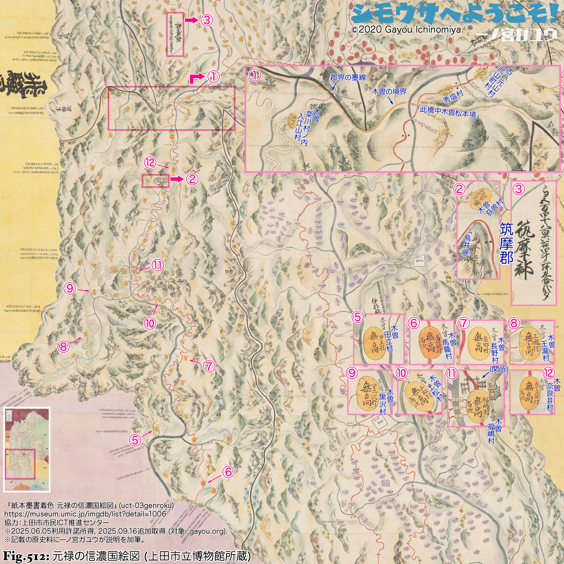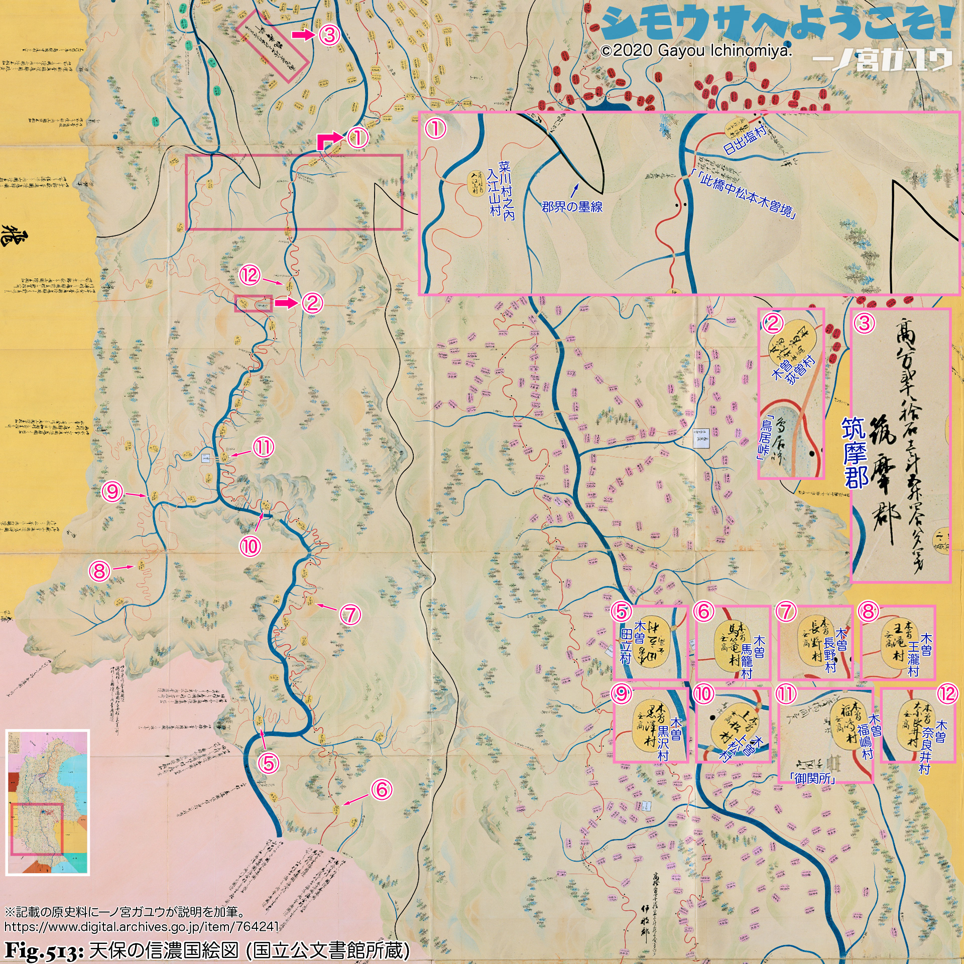 | ❉16: | 元禄国絵図では「木曽」を冠称するが、天保国絵図では冠称しない。漏れと思われる。 |