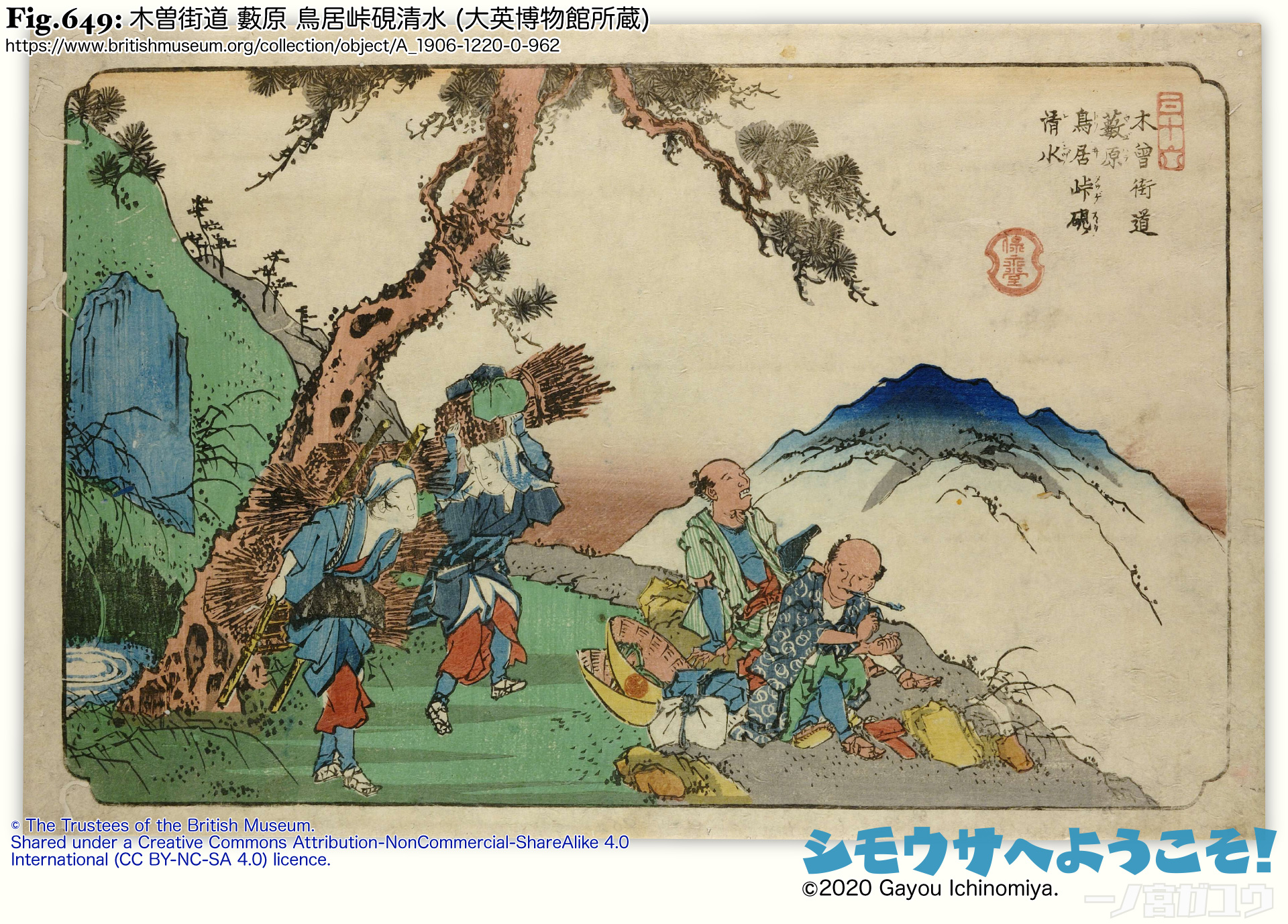 ▼(参考) 木曽街道 藪原 鳥居峠硯清水 (大英博物館所蔵)