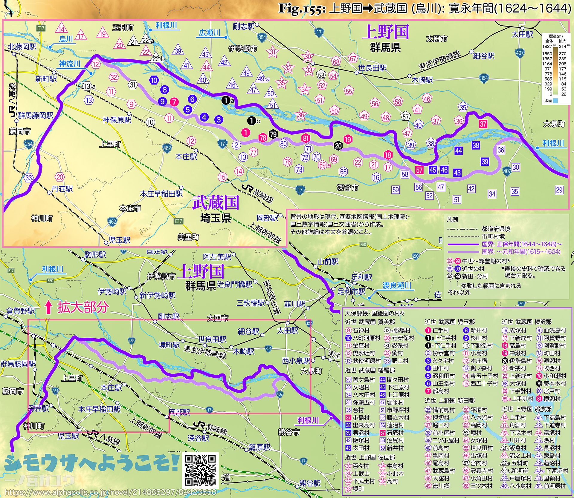 | ❉71: | [新田・分村] 寛文郷帳・中川忠英旧蔵 上野国絵図に含まれない。 |