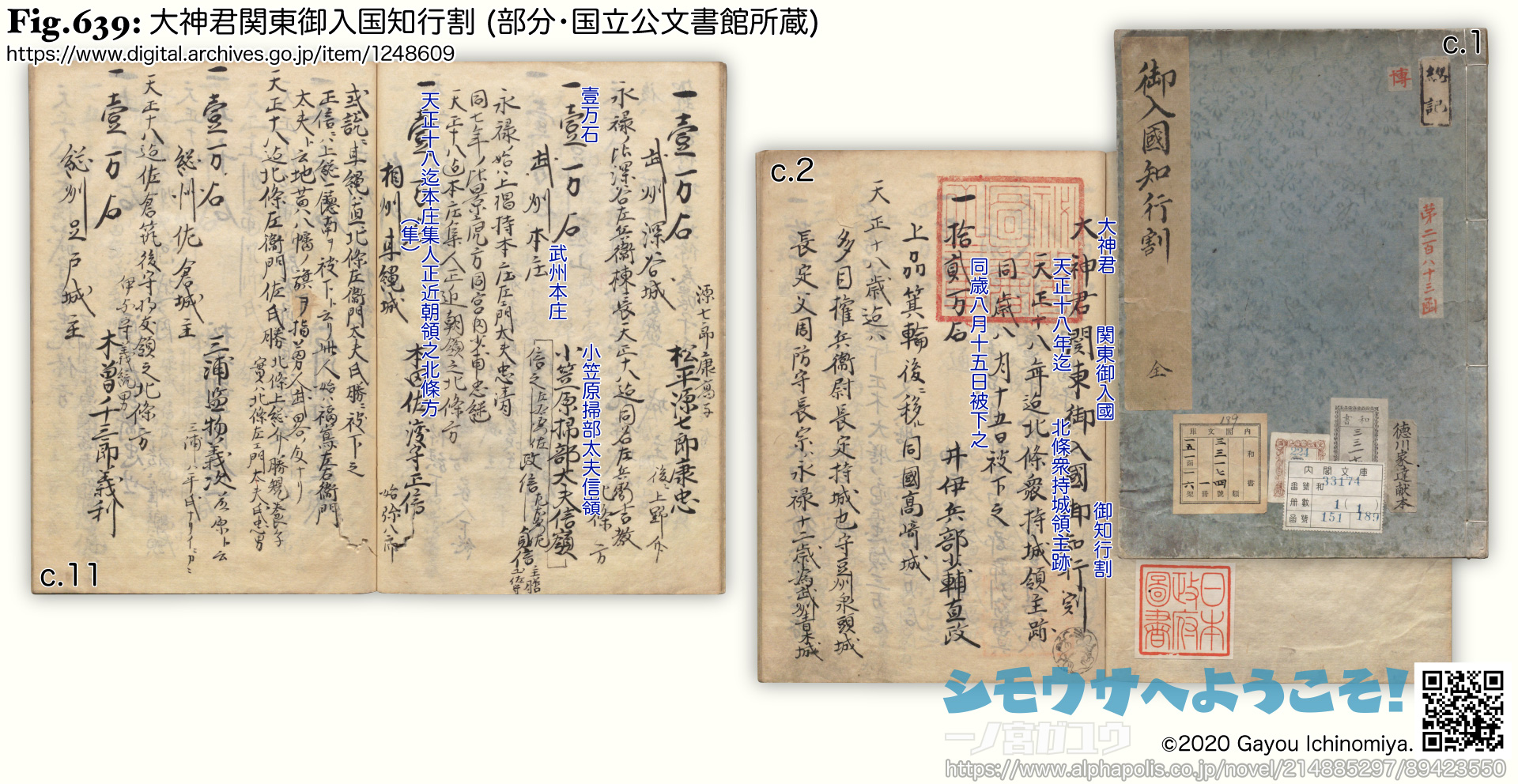 | ❉96: | [中世〜織豊期] 天正10年(1582) 9月11日: 「武藏嶋四貫九百文所」(宮下文書、大日本史料 第11編之3,1930)。 |