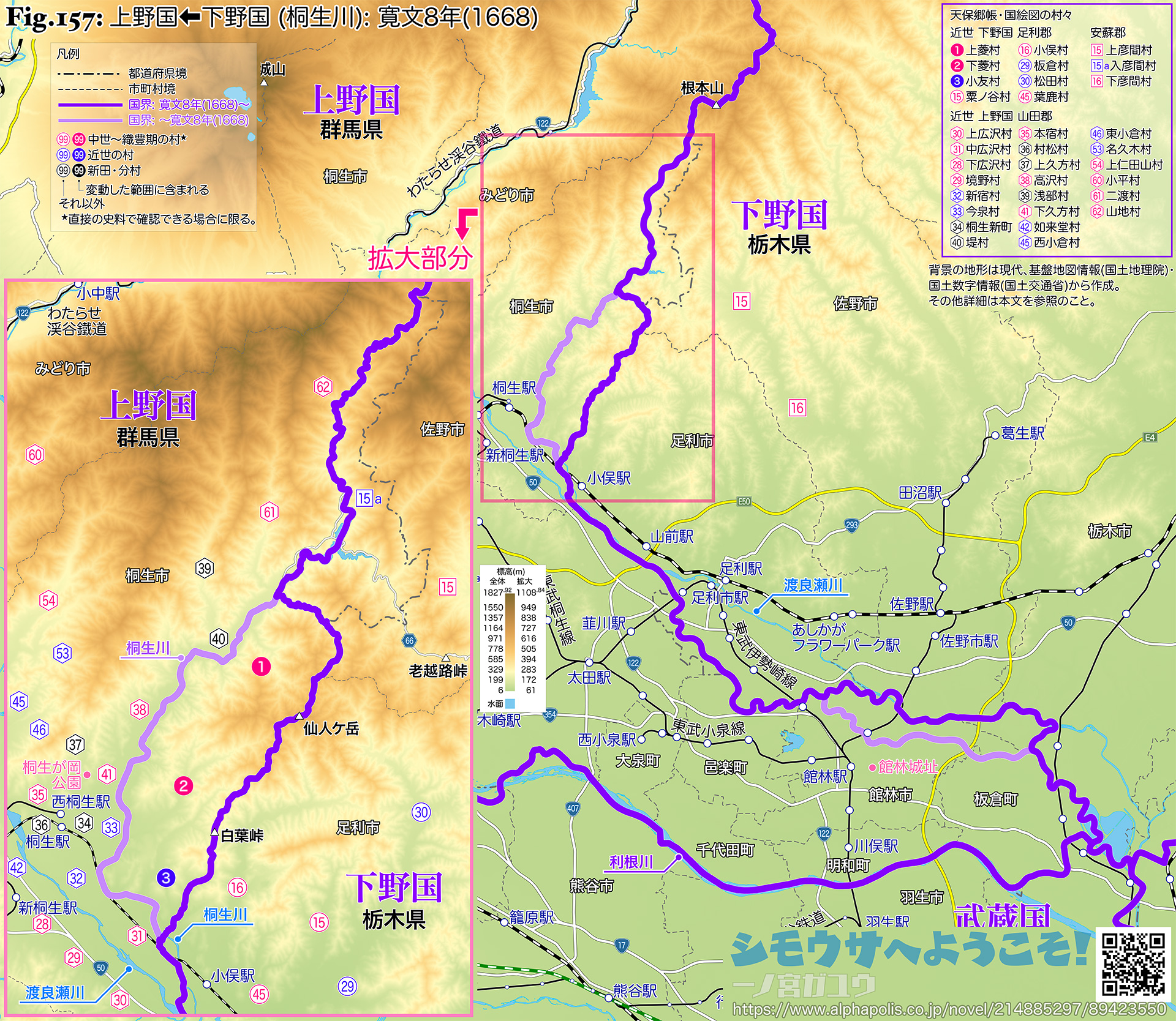 菱地区 (上菱村・下菱村・小友村) はその後再び変動し、下野から上野国に戻された。