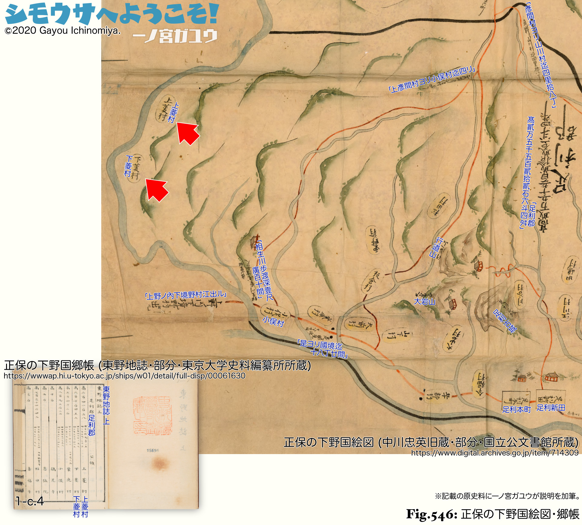 上記のとおり、上菱村・下菱村の国郡認識が在地で改まったのは元禄14年(1701) である。ただしこれは郡について「梁田郡ではなく足利郡である」と認識したものであって、国は常に「下野国」である。一時的に上野国 山田郡として把握されていたことは伝わっていない。