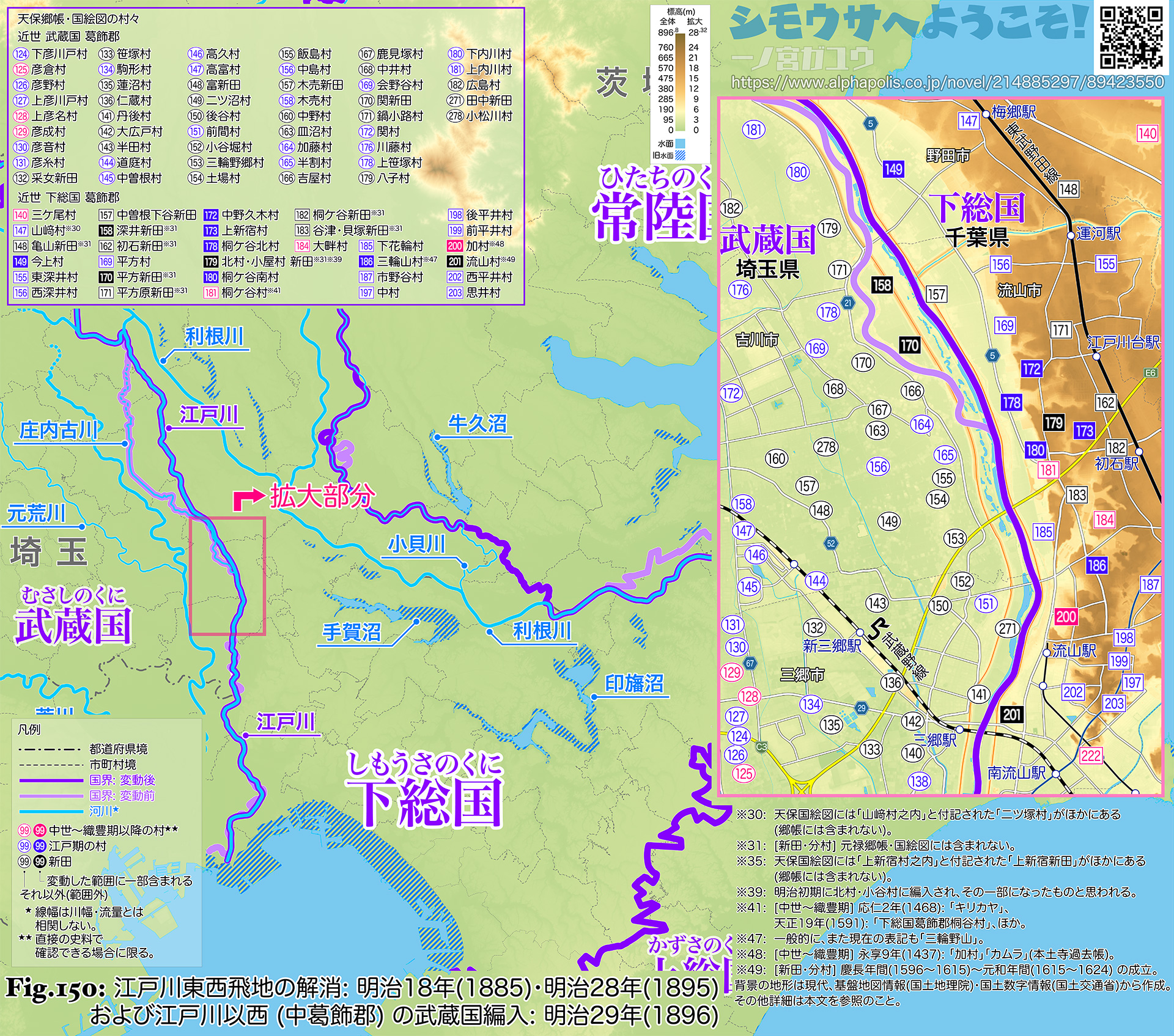 | ❉46: | 法律第24号の上では郡名だけ記載されているが、北葛飾郡は武蔵国、東葛飾郡は下総国である。 |