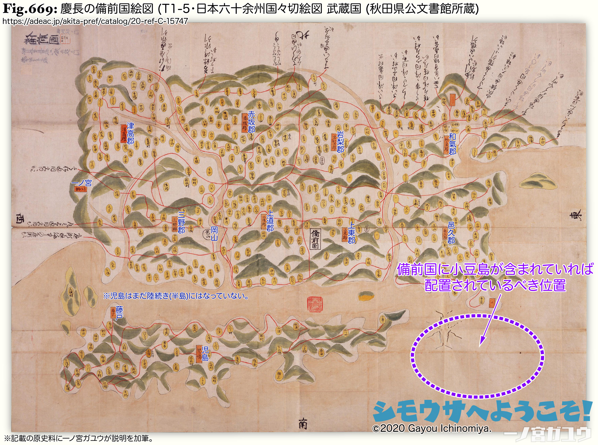 この慶長の備前国絵図に小豆島・直島は含まれていない。