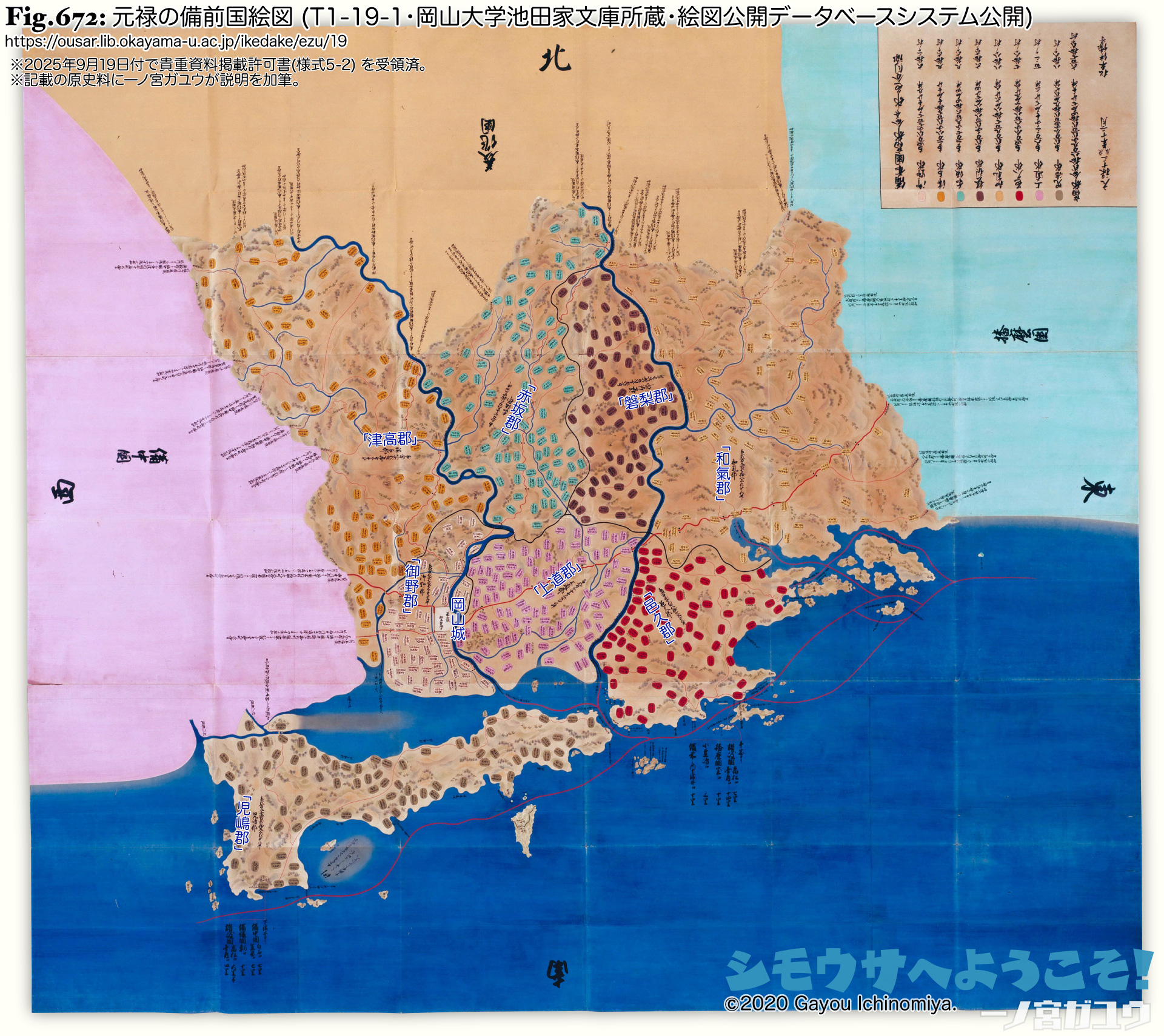 池田家文庫には元禄の備前国絵図も含まれ、直接の控え図が現存する (T1-19-1『備前国絵図』)。