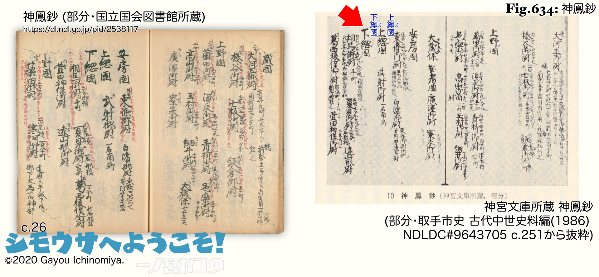 | ❉95: | 真岡市史 第2巻 古代中世史料編(1984) 所収。「御厨」の意図は不明 (伊勢神宮領になったことはない)、「野州」と同様に認識の誤りかと思われる。 |